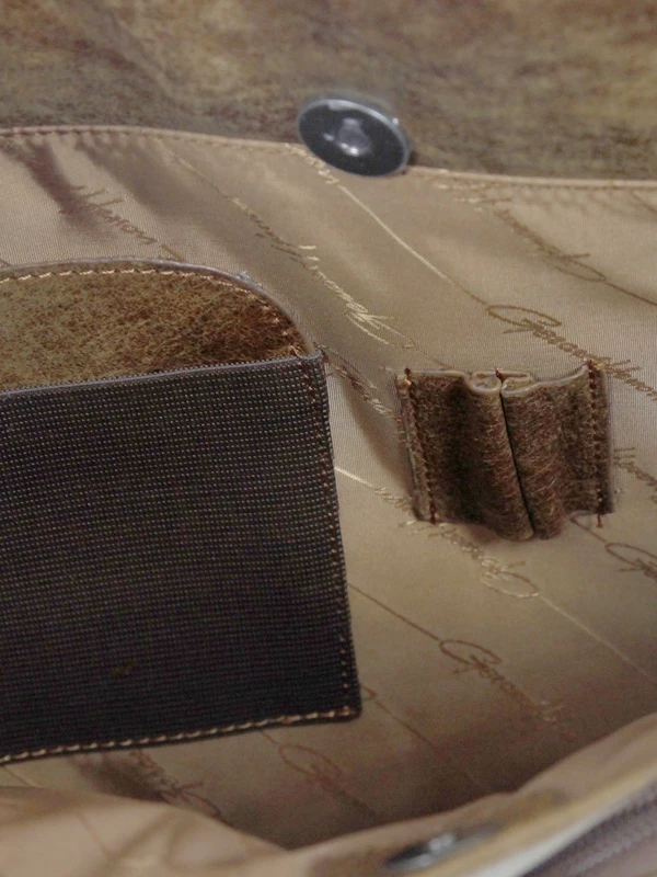 A l’intérieur, la besace Gérard Henon Outland 39.5 cm dispose d’un compartiment équipé d’une poche matelassée pour ordinateur 14 pouces, et également d’une poche pour téléphone portable, de compartiments pour cartes de visite et de poches pour les stylos. A l’extérieur, on trouve sous le rabat deux petites poches zippées, ainsi qu’une large poche zippée au dos.