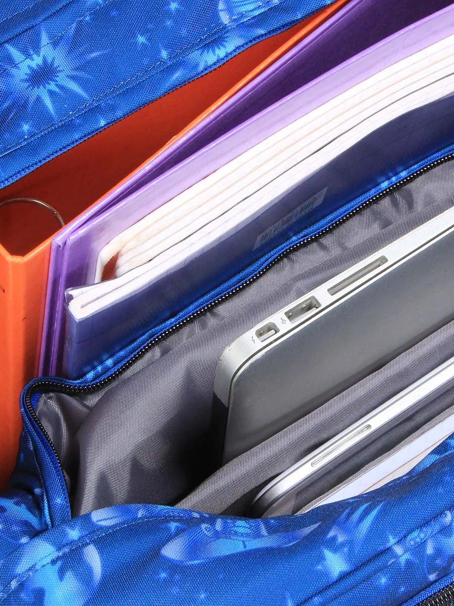 Avec ses 2 grands compartiments doublés, le cartable 4 roulettes Delsey Back To School permet d’emporter avec soin un grand nombre de cahiers 24 x 32, de classeurs à anneaux et de livres, notamment. Les écoliers connectés peuvent déposer dans ses poches rembourrées une tablette et un ordinateur jusqu’à 15.6 pouces. Devant et à l’arrière, 3 poches zippées supplémentaires permettent de garder sous la main certains effets personnels, une trousse plate, un goûter, etc.