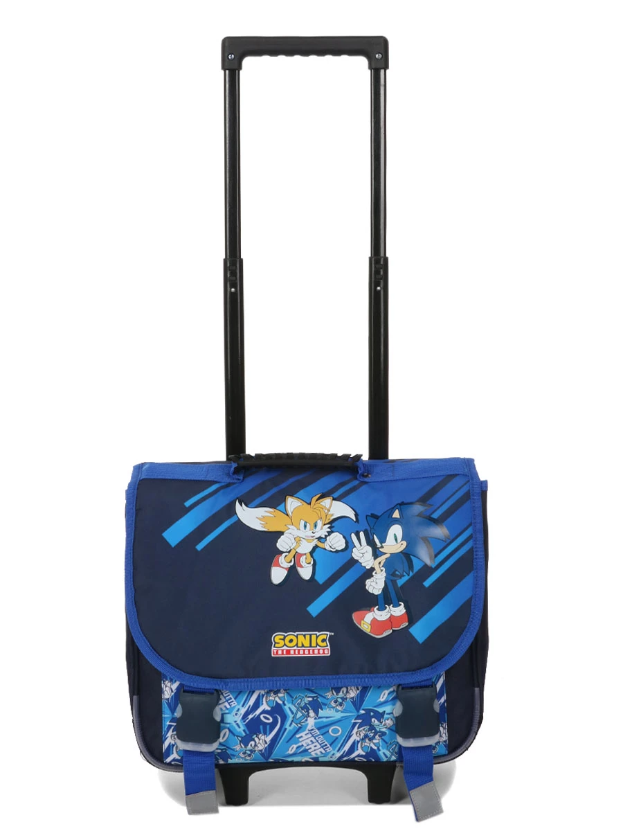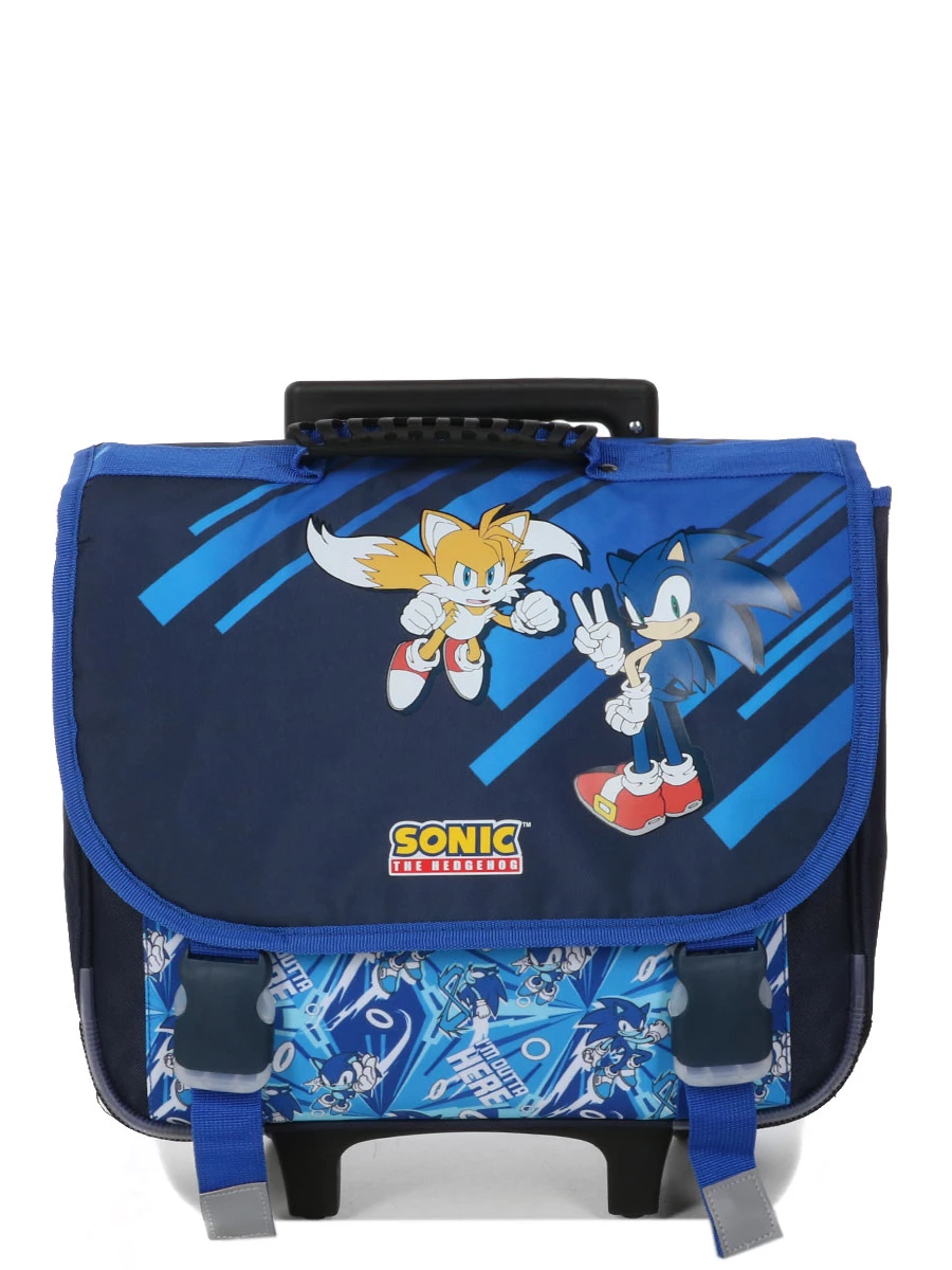 Le cartable à roulettes Sonic & Tails 38 cm fait démarrer l’année scolaire sur les chapeaux de roue avec son design inspiré par les exploits du célèbre hérisson supersonique. Son rabat est orné du petit héros bleu faisant le signe de la victoire et de son complice le renard Tails, tout aussi prêt à affronter le défi de la rentrée. La poche avant est également décorée du personnage Sonic, représenté dans ses multiples courses. Spécialement conçu pour les écoliers en classes de CP, CE1 et CE2, ce cartable est fabriqué en polyester léger, dispose d’un système de tractage et de portage confortable et d’un aménagement pratique. Surtout, il est proposé à un prix intéressant.