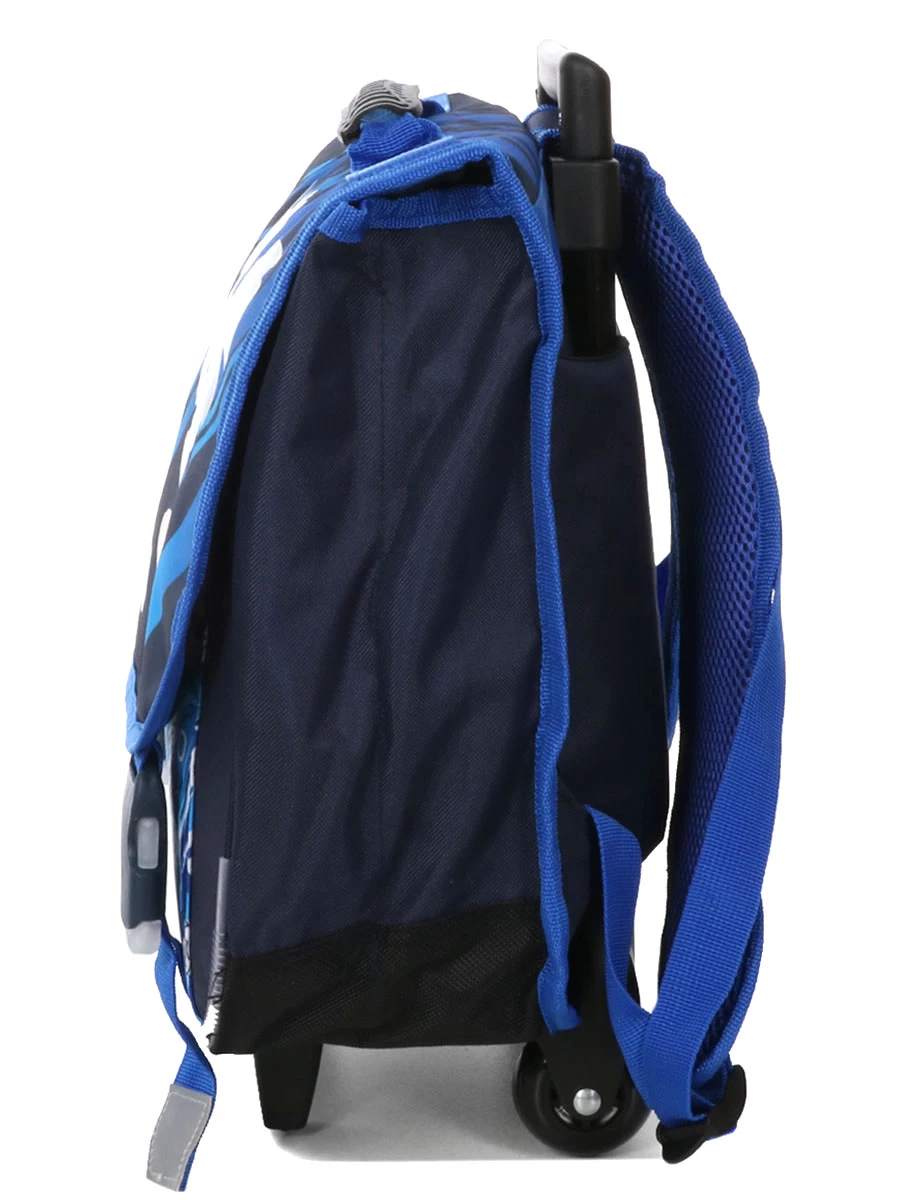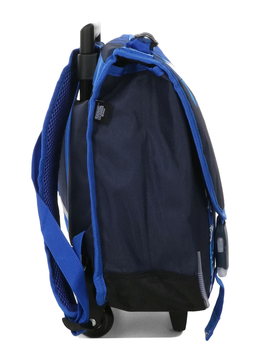 Le dispositif de tractage du cartable Sonic & Tails évite aux jeunes enfants de subir la charge des fournitures scolaires sur le dos et les épaules. Son trolley à double tube est ajustable selon la taille de son utilisateur et ses deux roues glissent de façon fluide. Lorsque son poids le permet, il se porte confortablement sur le dos grâce à son dossier et ses bretelles réglables moussés, après avoir recouvert les roulettes du rabat prévu à cet effet afin qu’elles ne salissent pas les vêtements. Une poignée anti-transpirante sert à porter le cartable à la main. Côté sécurité, l’enfant est protégé lors des trajets par temps sombre par les détails réfléchissants qui le rendent plus visible.