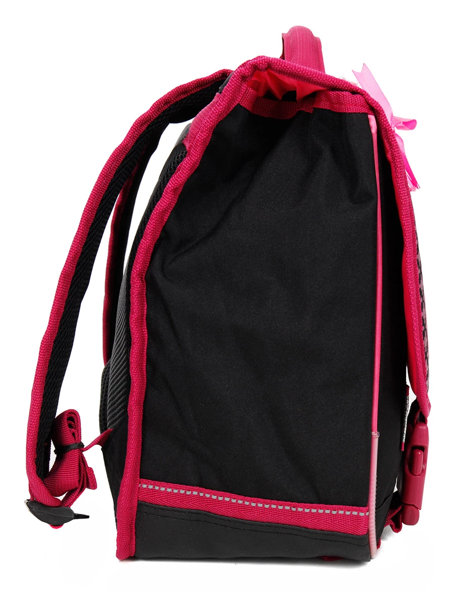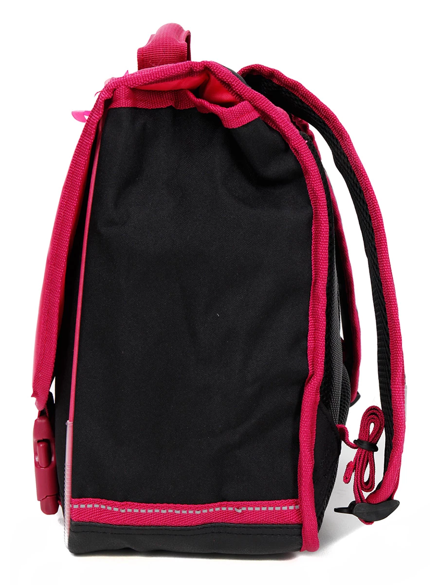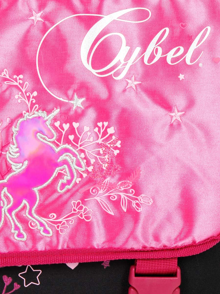 Ce cartable scolaire Cybel Rose utilise un rabat à tucks pour s’ouvrir et se fermer. A l’intérieur, il est équipé de 2 compartiments doublés pour ranger les cahiers, classeurs et livres d’école avec soin. A l’extérieur, 2 poches frontales offrent la possibilité de conserver des affaires à portée de main. On trouve par ailleurs des bandes réfléchissantes, situées sur les bretelles, lesquelles permettent de mieux voir la silhouette des fillettes dans la pénombre et d’assurer, donc, plus de sécurité.