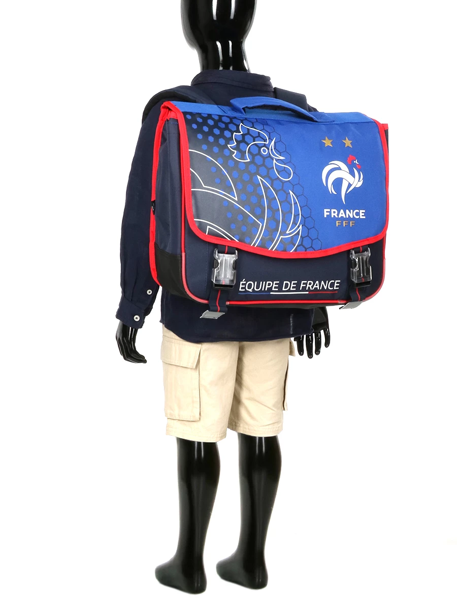 Le cartable Fédération Française de Football Le Coq 41 cm permet aux supporters en herbe de ne pas laisser leur passion sur le banc de touche lorsqu’ils partent à l’école (dès le CE2) ! Sa conception légère en polyester et son dispositif de portage ergonomique lui permettent de se faire oublier une fois juché sur les épaules pour des trajets tout confort. Sa grande taille permet d’y placer toutes les affaires utiles au bon déroulement de la journée de classe (y compris de grands cahiers). Son petit prix est un autre de ses atouts indéniables.