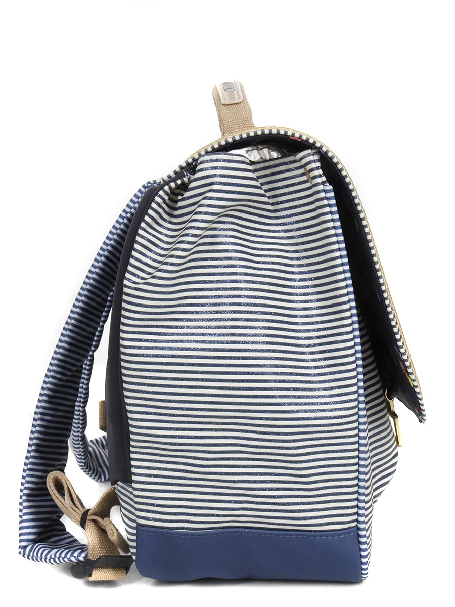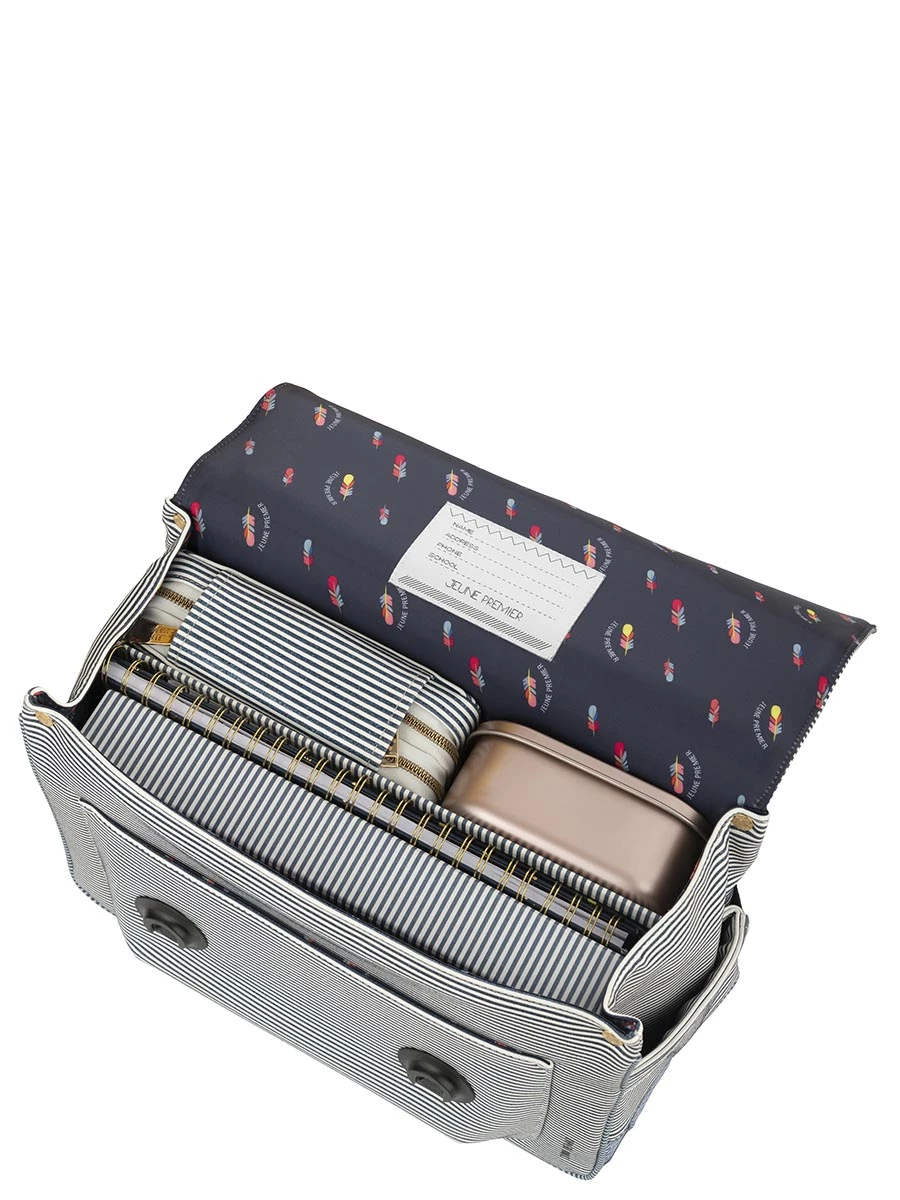 Le cartable Jeune Premier It bag Midi Glazed Cherry 38 cm permet aux fillettes les plus coquettes d’afficher un style marin chic et glamour jusque dans la cour de récré ! Elles vont craquer à coup sûr pour ses finitions pailletés, ses détails dorés et son beau motif cerise en relief. Dès le CP, c’est un allié tout confort pour les journées d’école. Sa fabrication soignée en polyester Oxford lui confère une excellente résistance à l’usure. Son agencement bien pensé facilite quant à lui l’organisation des cahiers, livres, classeurs et autres affaires emportées au quotidien par votre enfant.