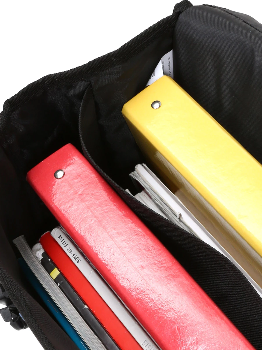 Les cahiers, classeurs et manuels ainsi que l’agenda et la trousse logent aisément dans les deux compartiments du cartable Kaporal Blue, compatibles avec les formats A4 et 24 x 32 cm. Une poche est spécialement prévue pour glisser la règle et l’avoir ainsi toujours sous la main. Pratique, une des poches frontales zippées est pourvue d’une paroi moussée qui garde son contenu à l’abri des coups éventuels. On y place par exemple l’étui à lunettes ou un en-cas. La poche frontale plate permet de ranger de petits accessoires comme le paquet de mouchoirs. Pour ne rien oublier avant de partir à l’école, il suffit de consulter son emploi du temps glissé dans le porte-planning sous le rabat. Enfin, un porte-adresse est également prévu pour noter les coordonnées du petit propriétaire du cartable.