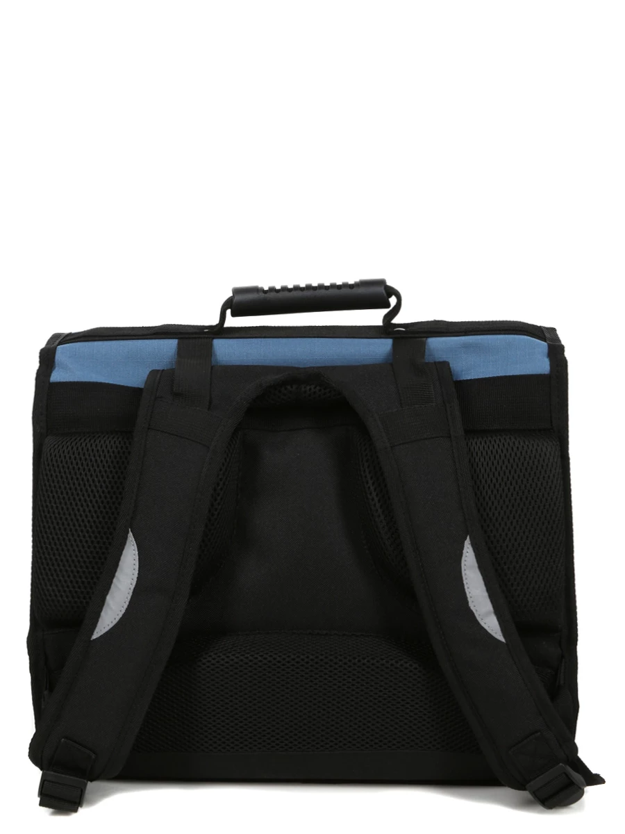 Très bien conçu sur le plan ergonomique, le cartable garçon Kaporal Blue présente un épais matelassage au niveau du dossier et des bretelles réglables et moussées. Ces deux zones sont également tapissées de mesh afin d’assurer leur ventilation. La poignée est renforcée d’un tube plastique qui offre une solide prise en main. Pour limiter les impacts et le passage de l’humidité lorsque le sac est posé au sol, il bénéficie d’un fond renforcé et de renforts aux angles. Enfin, pour que l’enfant soit bien visible lors des trajets à la nuit tombante, des détails réfléchissants sont cousus sur les côtés et à l’arrière.