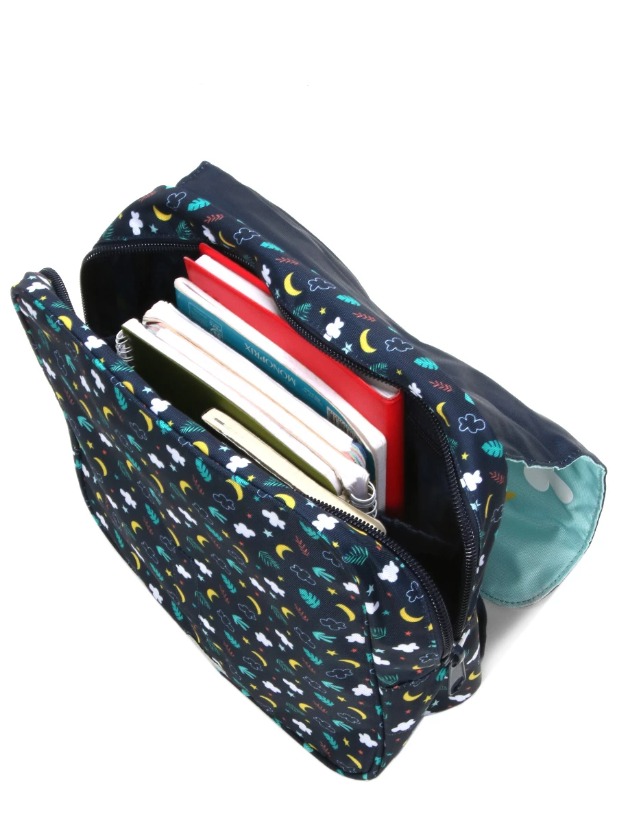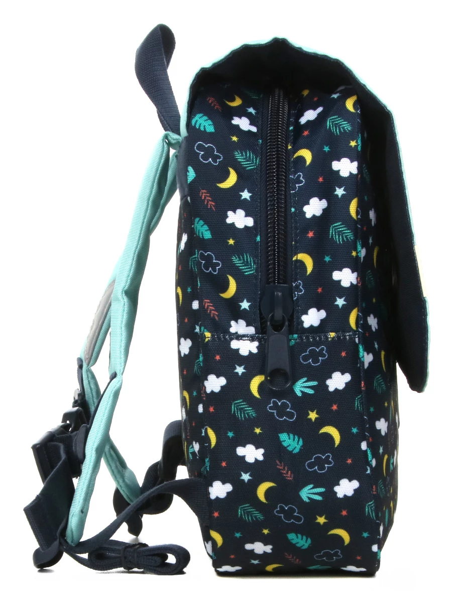 Le compartiment doublé du petit cartable L’école des Tann’s Rêveries se ferme aisément à l’aide de sa fermeture à glissière et de son rabat à attache magnétique. A l’intérieur, petits cahiers (hors A4), trousse, doudou, collation et autres essentiels trouvent une place. Pour retrouver aisément certaines petites affaires, elles peuvent être glissées dans l’une de ses 2 poches.