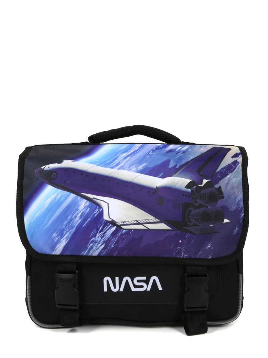 Le cartable Nasa Navette se porte avec confort sur les épaules avec ses sangles moussées réglables à taille et son panneau dorsal matelassé. Pour le tenir à la main, il suffit d’empoigner sa anse renforcée. Au niveau des angles et du fond, des renforts sont présents pour une meilleure durabilité. Enfin, il s’ouvre et se ferme à l’envie à l’aide de son rabat à attaches rapides.