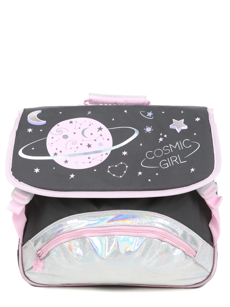 Le cartable Oberthur Cosmic Girl 38 cm met des étoiles dans les yeux des petits filles en classes de CP, CE1 et CE2 avec son design inspiré par l’univers spatial. Les fillettes qui rêvent de devenir astronautes adorent les motifs rose pâle sur fond gris qui ornent son rabat (planète, croissant de lune, étoiles et constellation en forme cœur), sa poche frontale en plastique scintillant et les paillettes qui se cachent dans ses fermoirs clips en plastique semi-transparent. Les parents de leur côté notent les atouts en matière d’ergonomie et de fonctionnalité de ce cartable très bien conçu.