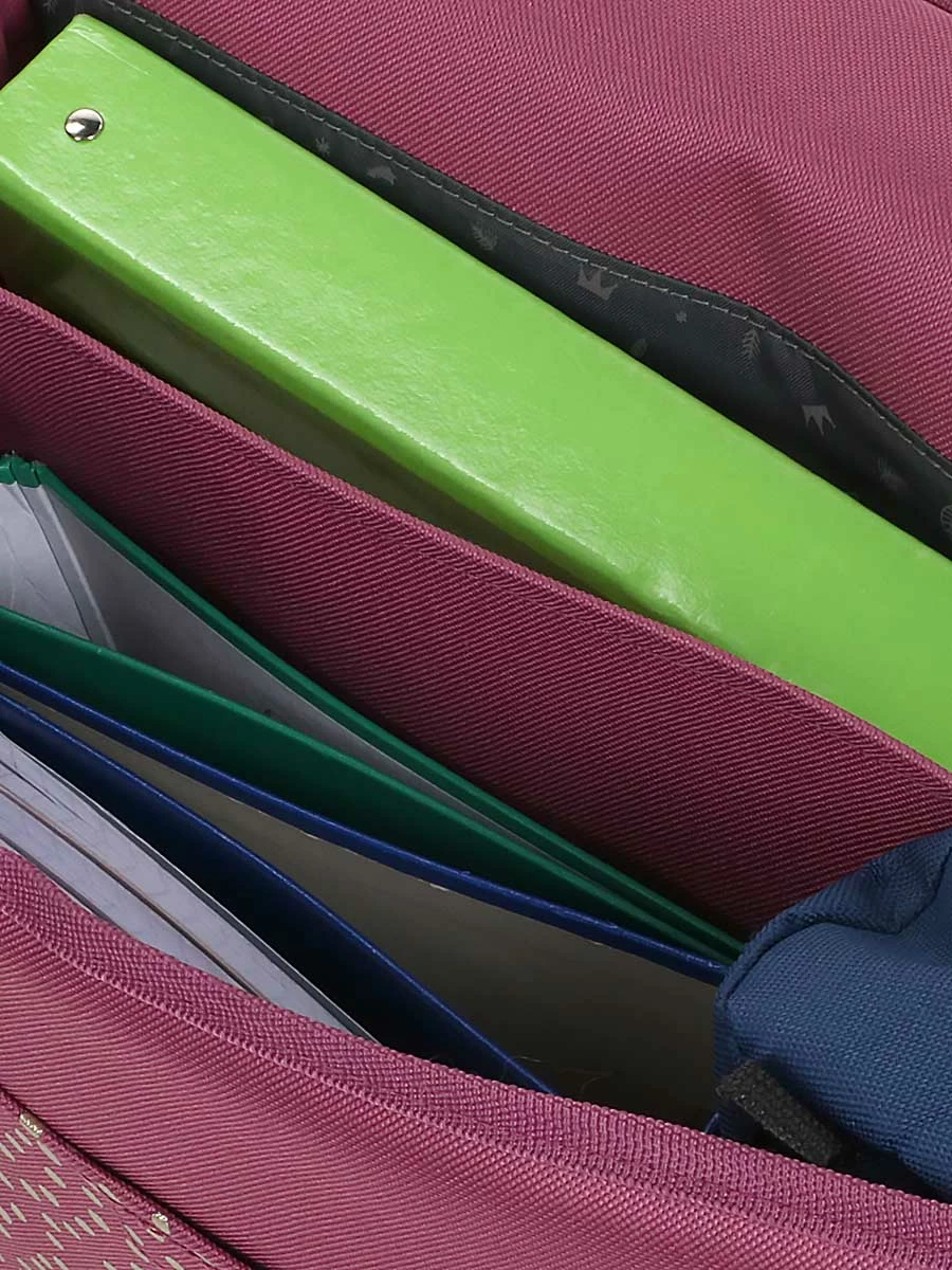 Sous son rabat à attaches, le cartable CP – CE2 Réversible Pol Fox Butterfly comporte deux compartiments où loger tout le nécessaire scolaire : des cahiers jusqu’aux formats A4 et 24 x 32 cm, des classeurs, des livres, le cahier de correspondance, l’agenda et la trousse. Les accessoires plus petits ou les jouets qui ne peuvent rester à la maison seront à leur place dans la large poche plate fermée par un scratch. Pour se désaltérer sans devoir ouvrir le cartable, un porte-bouteille est fixé sur le côté.
