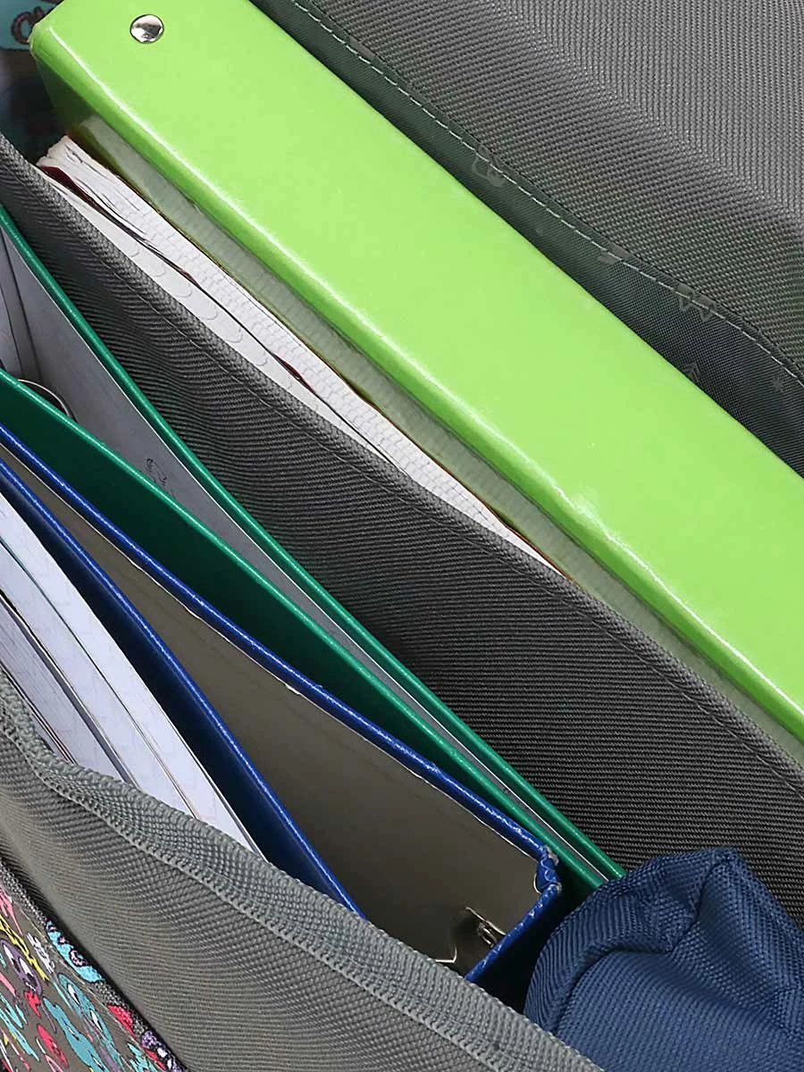 Ranger ses affaires efficacement s’apprend dès l’école primaire avec le cartable garçon Réversible Pol Fox Rider. Sous son rabat à attaches, sa large ouverture dévoile deux espaces de rangement pouvant accueillir livres, classeurs et cahiers de formats A4 et 24 x 32 cm, ainsi qu’une trousse. Une large poche plate loge tous les petits accessoires indispensables à la vie scolaire : paquet de mouchoirs, feutres, équerre, rapporteur, etc. Sur le côté, une poche en mesh permet de garder à portée de main une bouteille ou le parapluie.