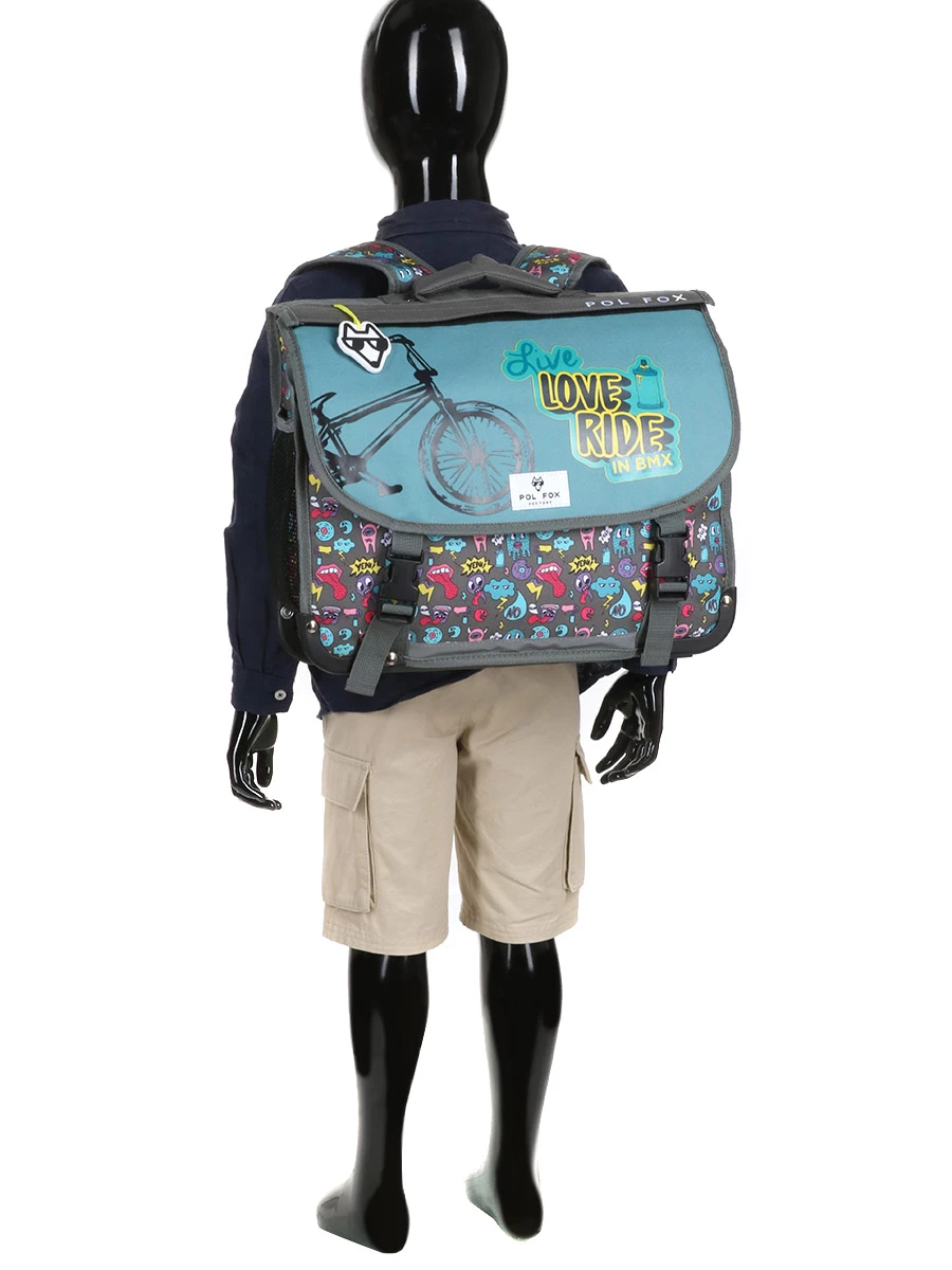 Le cartable Réversible Pol Fox Rider 38 cm donne du peps aux journées d’école avec ses amusants motifs de gentils monstres multicolores. Son rabat réversible est orné d’un imprimé évocateur de l’univers du vélo motocross et du graff qui plaira aux enfants les plus aventureux. La fonctionnalité et le confort sont aussi au rendez-vous grâce à ses différents espaces de rangement et ses multiples renforts en mousse. Pour des trajets en toute sécurité, on apprécie la présence de détails réfléchissants.