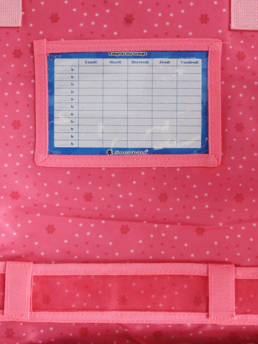 Les deux compartiments doublés du cartable CE2 – CM2 Snowball Romantique Coeur permettent d’organiser soigneusement les diverses fournitures scolaires. Pour faciliter l’étape de la préparation, un porte emploi du temps est présent derrière le rabat. Une petite poche zippée permet de garder les accessoires importants comme la carte de cantine en sécurité. La règle ne risque plus d’aller se dissimuler au coeur d’un livre puisqu’un passant à scratch lui est dédié. Cahier de texte et crayons de couleur sont disponibles en accès rapide grâce à la poche frontale.