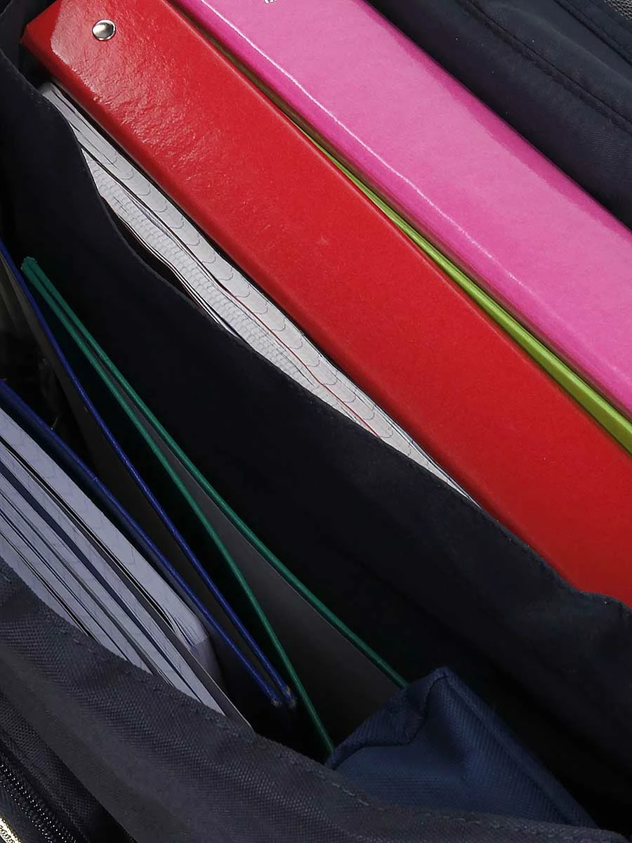- 2 compartiments doublés pouvant accueillir de grands cahiers A4 et 24 x 32,