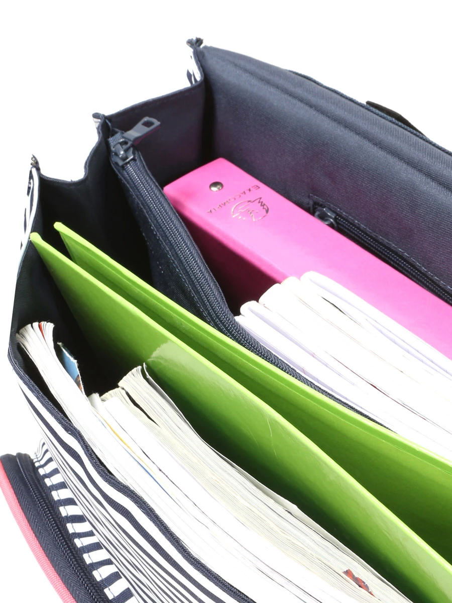 Le cartable Tann’s Enora 41 cm est idéal pour les futures capitaines avec les motifs marins qui ornent son revêtement éco-responsable en polyester recyclé. Compatible A4 et 24 x 32, il est pensé pour convenir aux classes du CE2 au CM2. Des détails réfléchissants permettent à sa porteuse d’être vue même en navigant de nuit.