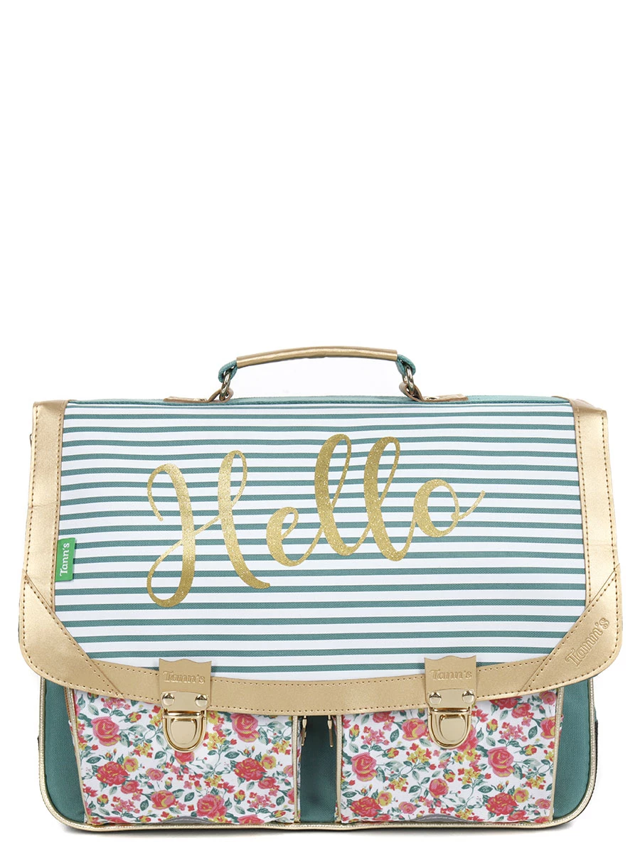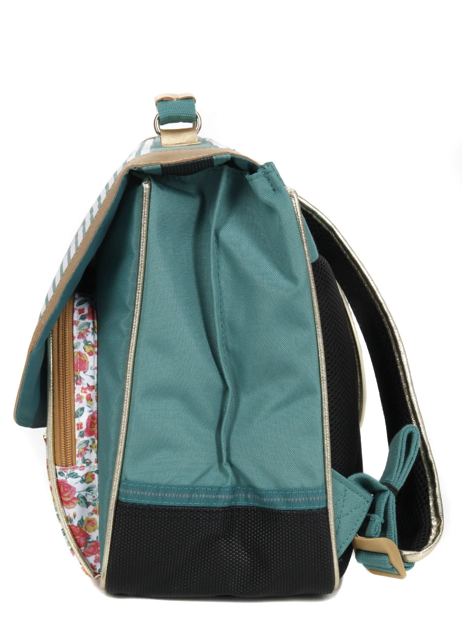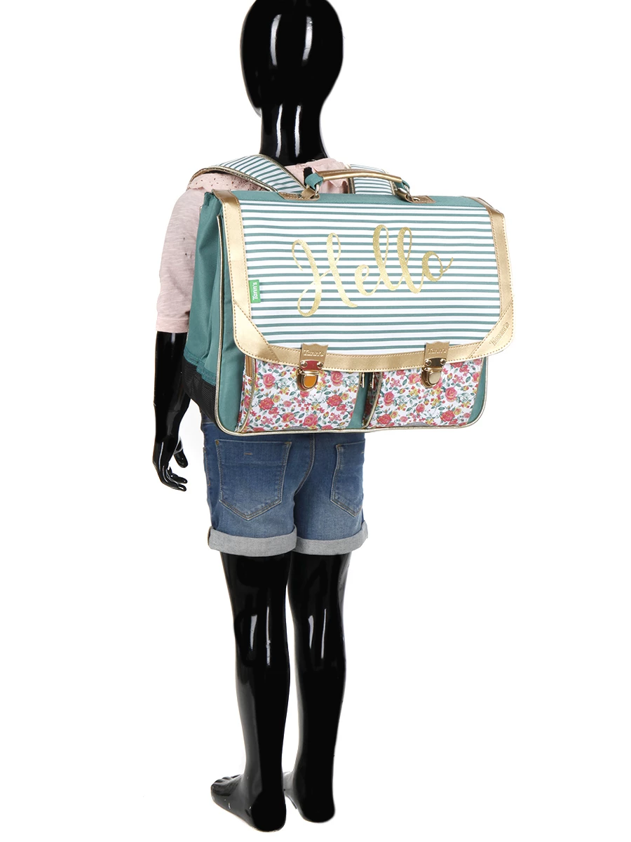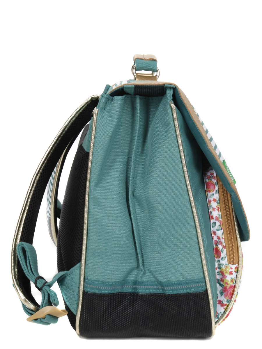Le cartable Tann’s Lucie 38 cm – 2 boucles apporte une touche printanière à la rentrée scolaire des écolières (dès le CP) avec ses motifs fleuris colorés, son bel imprimé marinière vert et ses ganses délicates en simili cuir doré. Son inscription pleine de bonne humeur permet d’égayer les débuts de journée de votre petite princesse. Son look unique est loin d’être son unique atout. Il est en prime aussi confortable que fonctionnel pour simplifier le quotidien des jeunes élèves. Avec lui, les trajets de l’école à la maison n’ont jamais été aussi agréables ! Il bénéficie en prime d’une conception solide en polyester recyclé renforcée au niveau des angles et du fond pour une excellente durabilité tout au long de l’année.