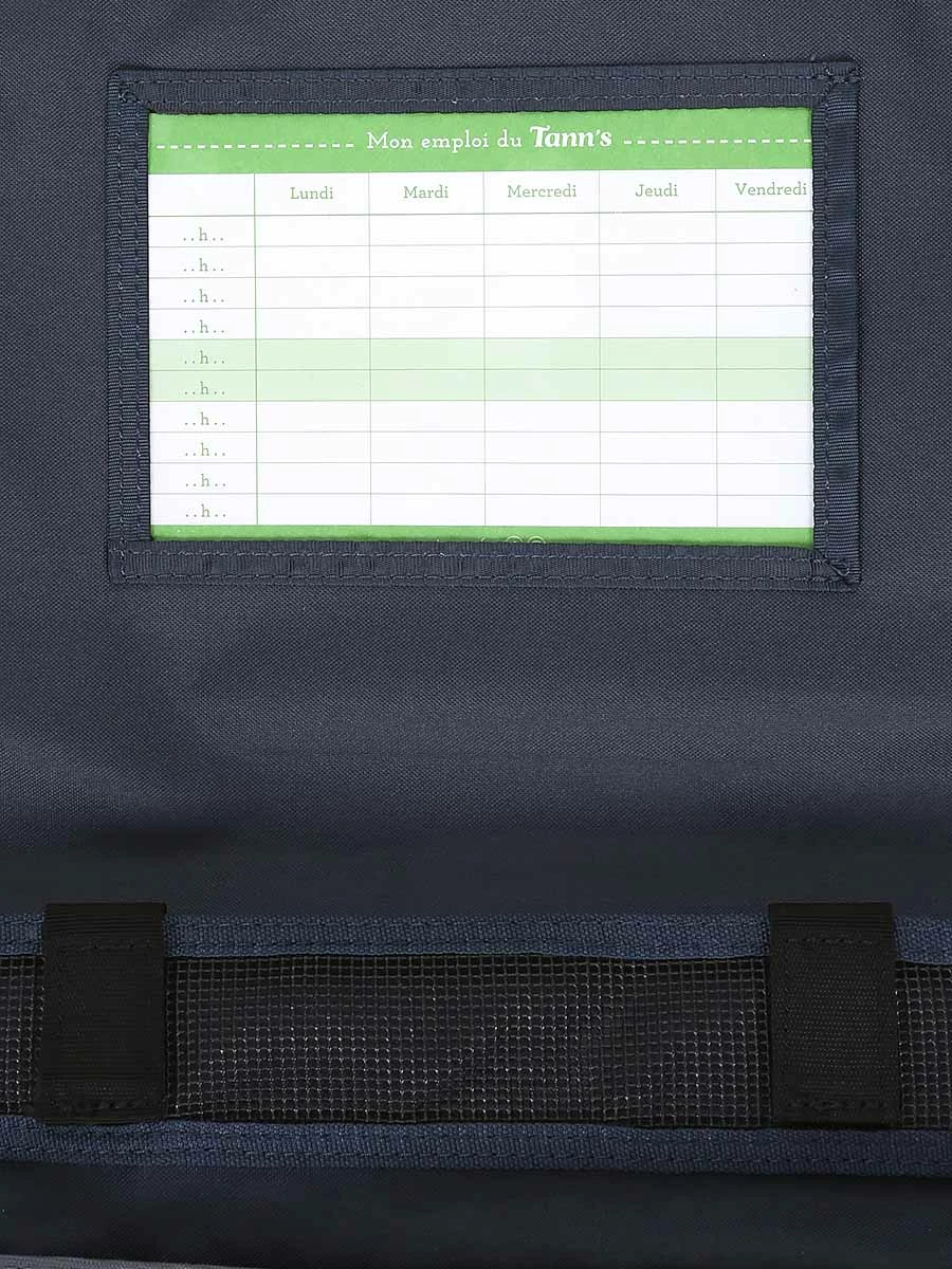 Le cartable ergonomique Tann’s Thomas comprend deux compartiments doublés, une poche intérieure, un passant pour la règle, une poche frontale et un porte emploi du temps pour faciliter l’organisation des fournitures scolaires. Le porte étiquette ajoute une touche de praticité pour ne pas le perdre.