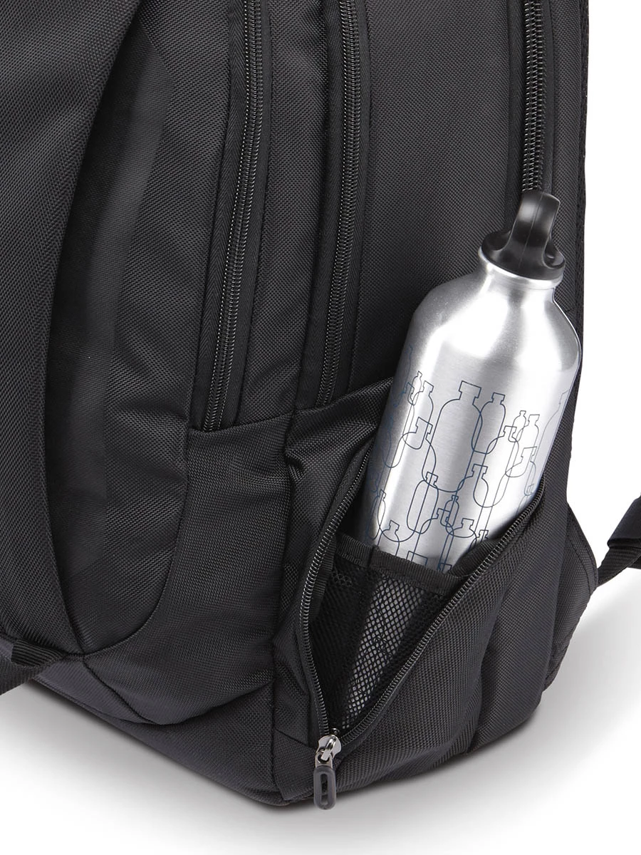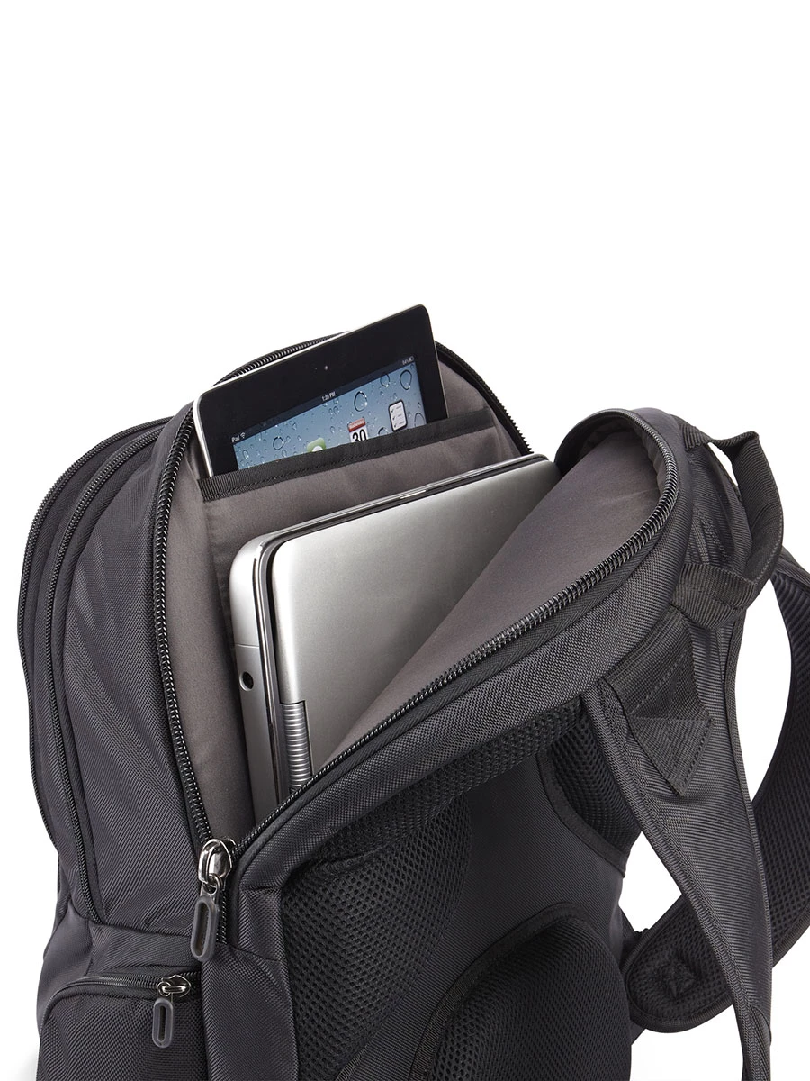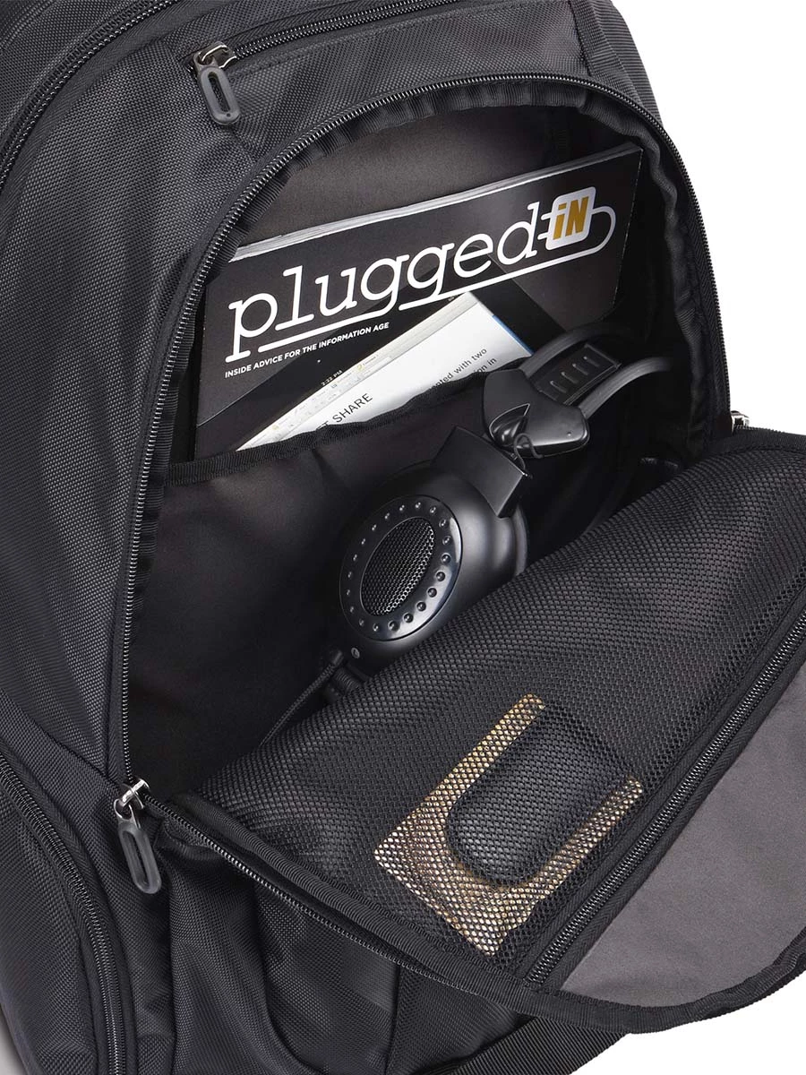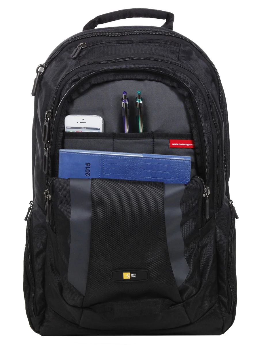 A l’intérieur, ce sac à dos Case Logic Business est doté de 2 compartiments de rangement doublés et zippés. Le premier espace est muni d’une poche rembourrée pour tablette et d’un espace dédié à l’ordinateur portable. Le second offre, quant à lui, la possibilité de ranger des documents, dossiers ainsi que le cordon d’alimentation. Côté extérieur, on trouve de nombreuses poches de rangement : à l’avant, au dos, sur les côtés… La poche frontale est bien organisée avec des rangements additionnels pour téléphone, cartes de visite, stylos etc…
