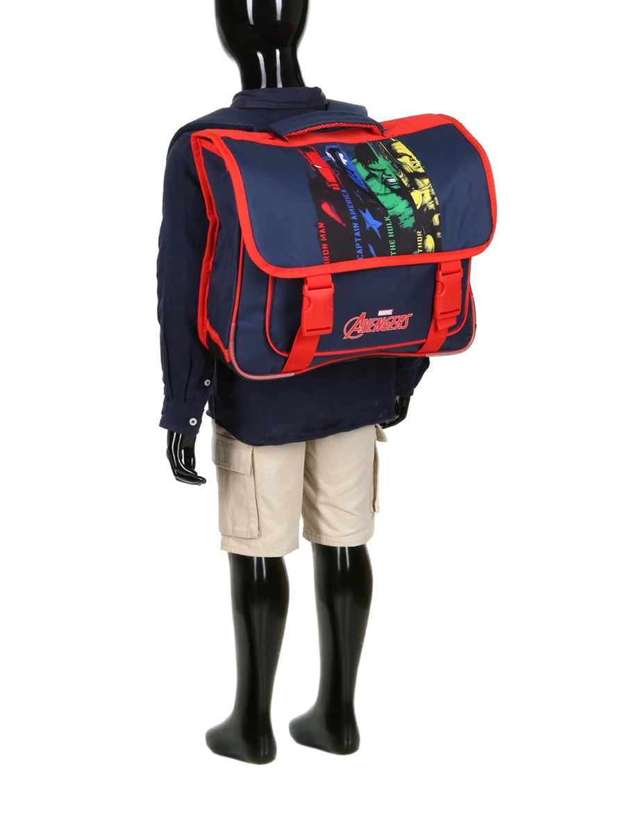 Le cartable Avengers Focus 38 cm met la rentrée aux couleurs des comics américains avec son design bleu et rouge orné sur le rabat de quatre bandes de teintes différentes représentant chacune un super héros des Avengers : Iron Man, Captain America, Hulk et Thor. Les petits fans de l’univers Marvel en classes de CP, CE1 et CE2 l’afficheront avec fierté dans la cour de récréation ! Pour ne pas amplifier les désagréments du transport des fournitures scolaires, ce cartable est fabriqué en polyester léger et offre un système de portage confortable. D’un prix modique, il est à la portée de toutes les bourses.