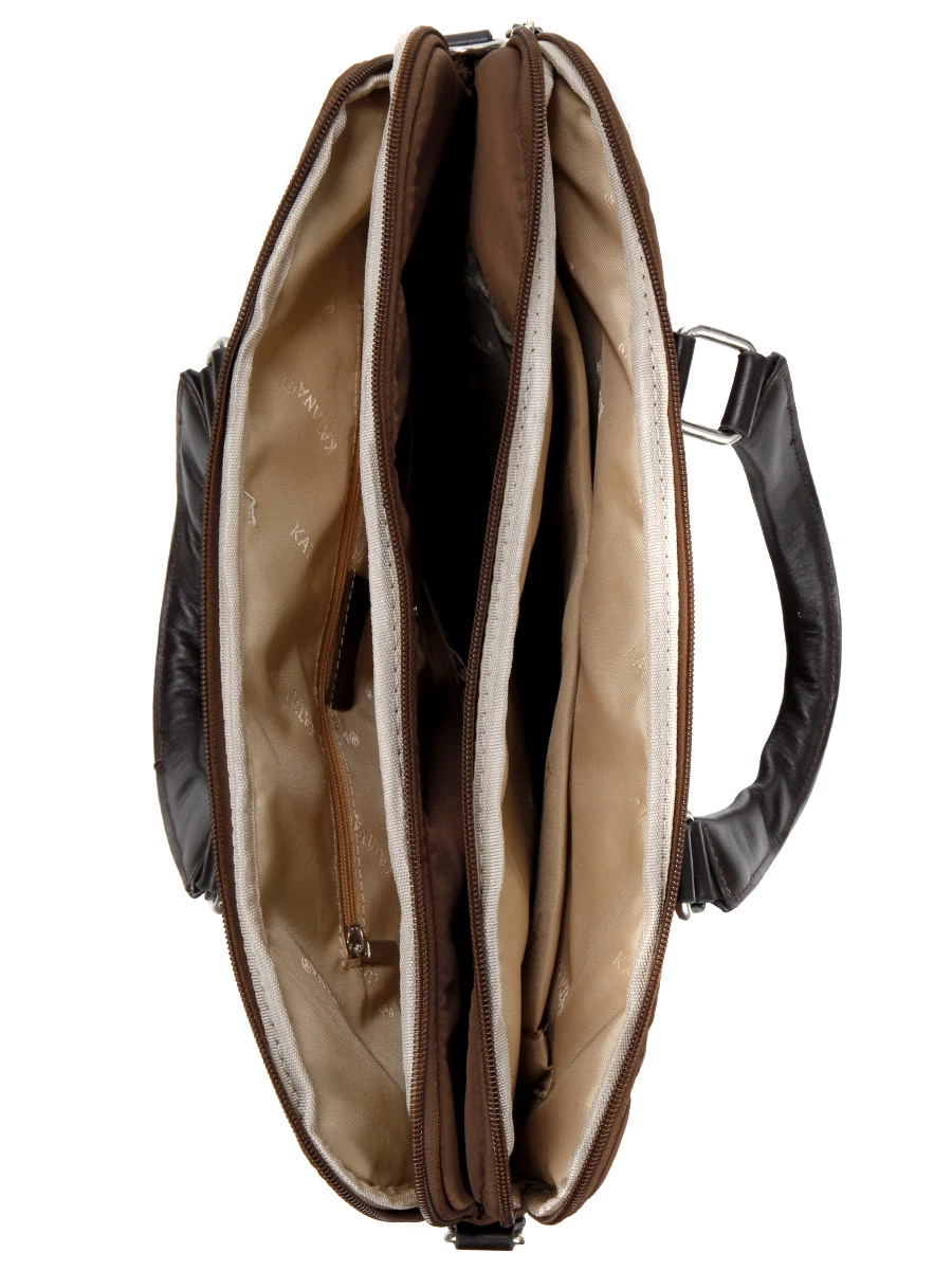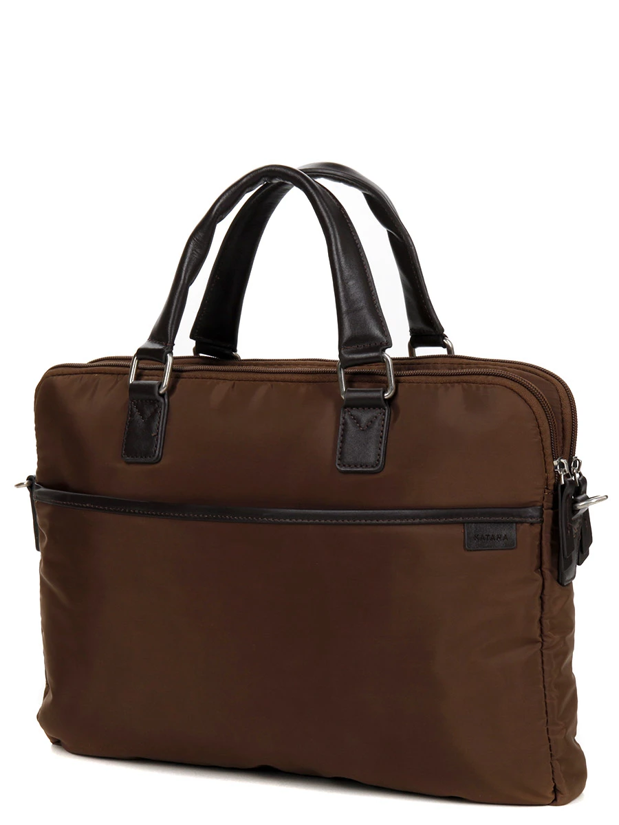 Ce sac business Katana Urban Chic est équipé de 3 compartiments doublés, dont deux se referment à l’aide d’une fermeture à glissière et un à l’aide d’un fermoir magnétique. A l’intérieur, sa poche rembourrée permet d’accueillir un ordinateur ou une tablette 11 pouces. En parallèle, il possède 4 poches plaquées ainsi qu’une poche zippée pouvant être utiles pour y glisser des stylos, cartes, badges ou clefs, par exemple. Les indispensables restent néanmoins accessibles grâce à ses deux larges poches extérieures.