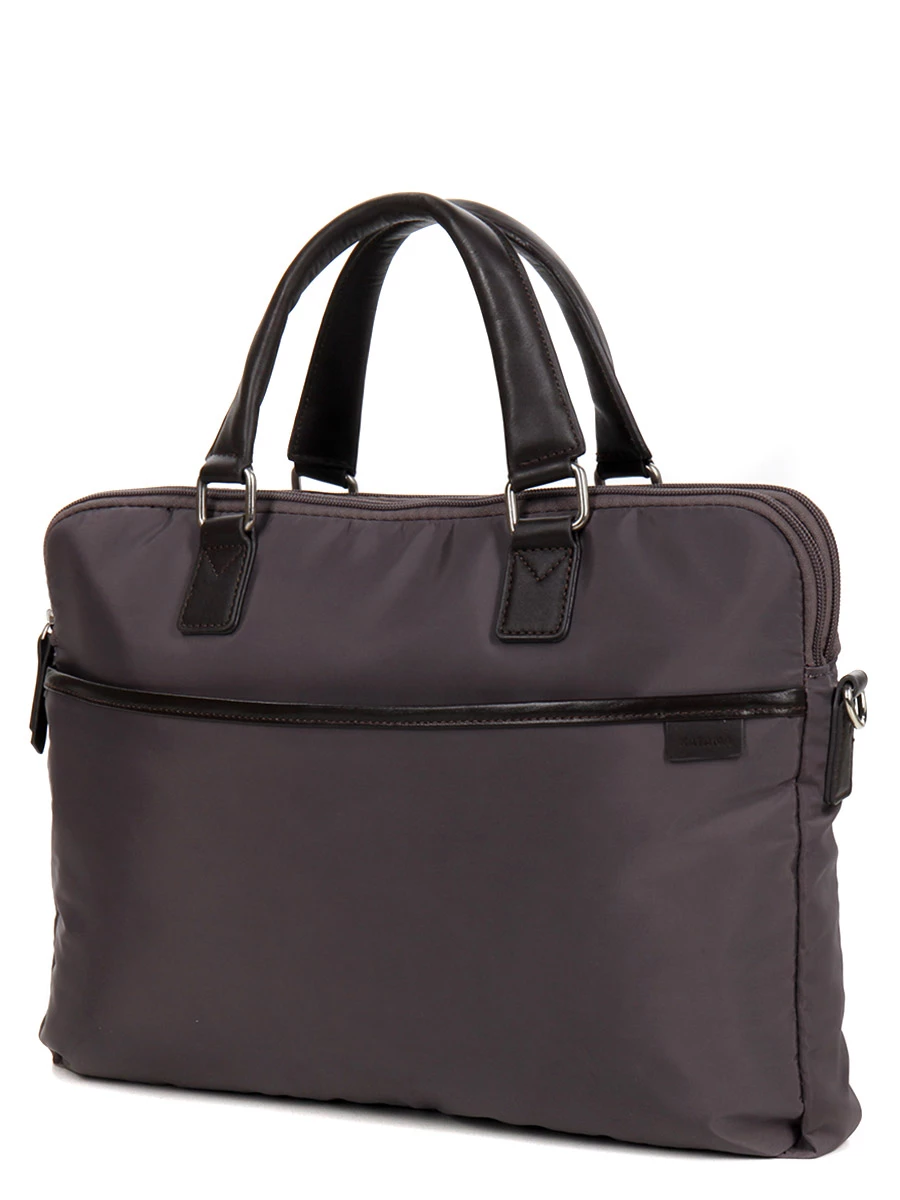 Le porte ordinateur Katana Urban Chic se porte avec aisance sur l’épaule. Pour cela, il est muni d’une bandoulière ajustable et amovible. Cependant, il est aussi possible de le porter à la main grâce à ses anses en cuir. Afin de l’emporter absolument partout, et même en voyage, un passant pour trolley est dissimulé dans sa poche arrière afin de le joindre à une valise.