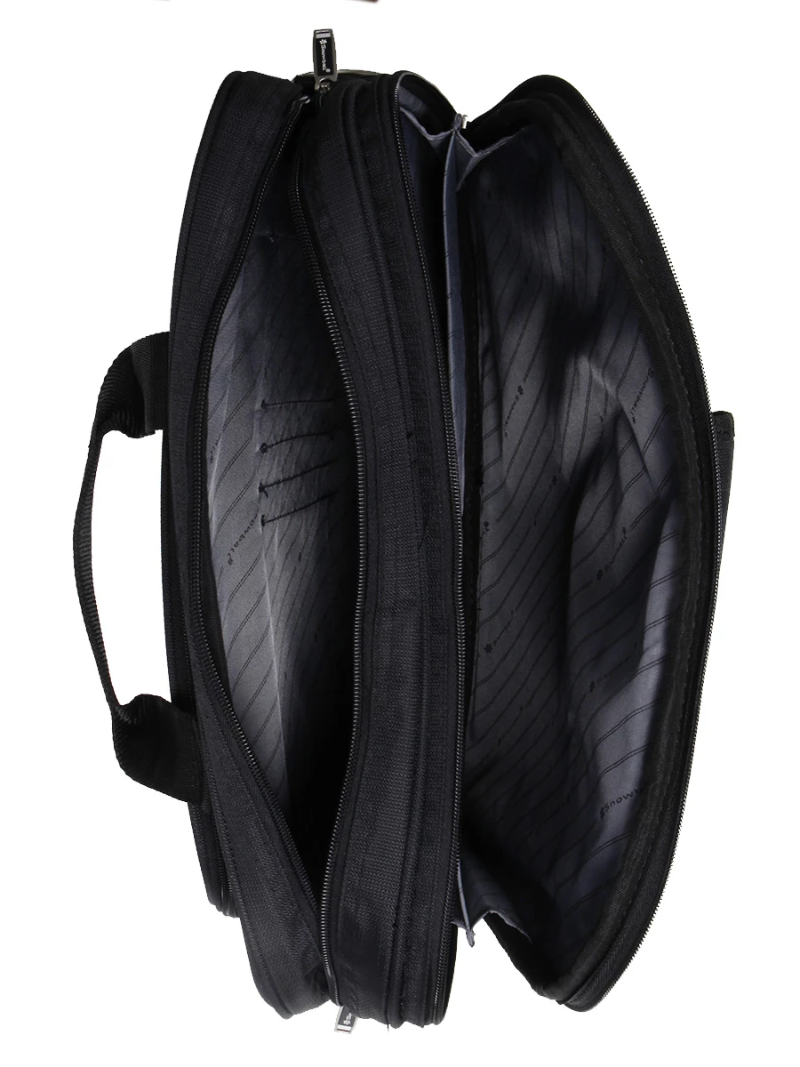Les 2 compartiments zippés du sac business Snowball Business Line permettent de sérier efficacement, d’un côté, les documents de travail grâce à la présence d’un trieur souple et, de l’autre, le matériel informatique. Pour cela, le compartiment avant est muni d’une poche matelassée avec patte de maintien. Les effets personnels – comme le portefeuille, le téléphone ou un trousseau de clés, notamment – et les petites fournitures trouvent une place de choix dans l’une des petites poches intérieures comprises dans sa poche frontale.