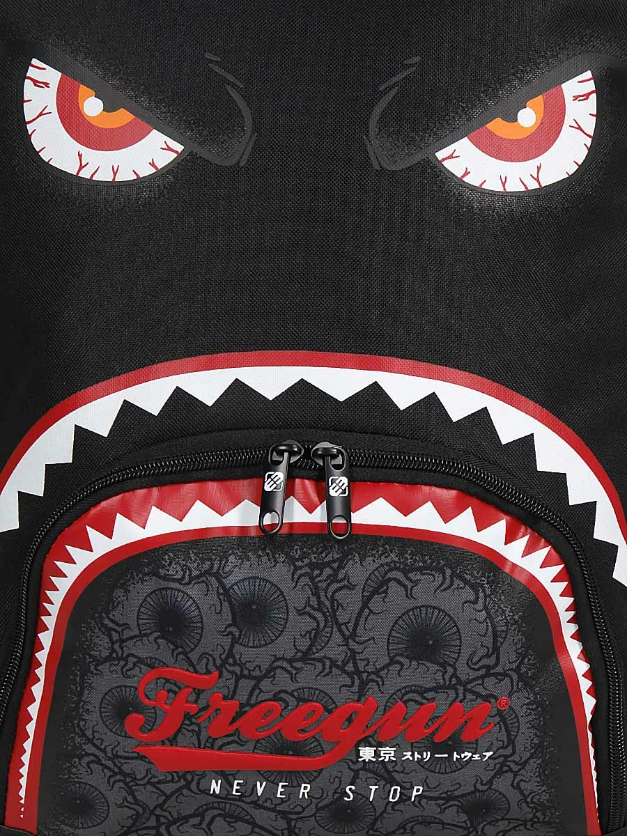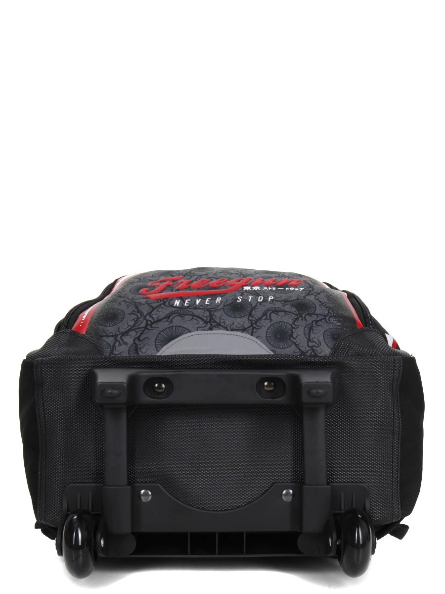 Les patins de protection du sac 2 compartiments Freegun Monster Eyes lui confèrent une grand stabilité. Le trolley double tube ajustable et les deux roues lui permettent de rouler de manière fluide. Il peut aussi être confortablement porté sur les épaules grâce à son cache roulettes, et ses bretelles et son dos matelassés. La poignée supérieure est moussée en mesh pour une aération accrue.