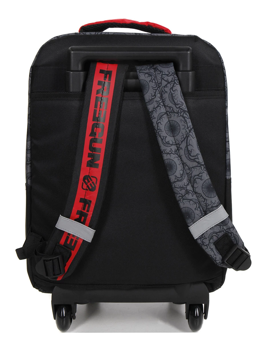 Le sac à dos à roulettes Freegun Monster Eyes permet d’emporter toutes les fournitures de classe sans s’abîmer les épaules. Compatible aux formats A4 et 24 x 32, il est parfait pour les classes de CE2, CM1 et CM2. Le monstre terrifiant ornant son revêtement en polyester fait le bonheur des petits rebelles. La doublure intérieure et le fond déperlant préservent le contenu des intempéries, tandis que les détails réfléchissants protègent son porteur.