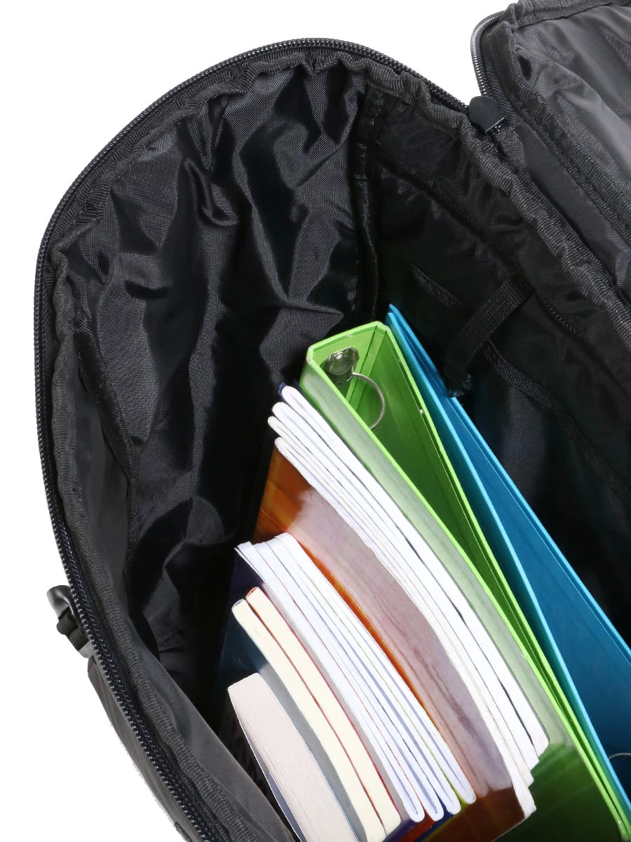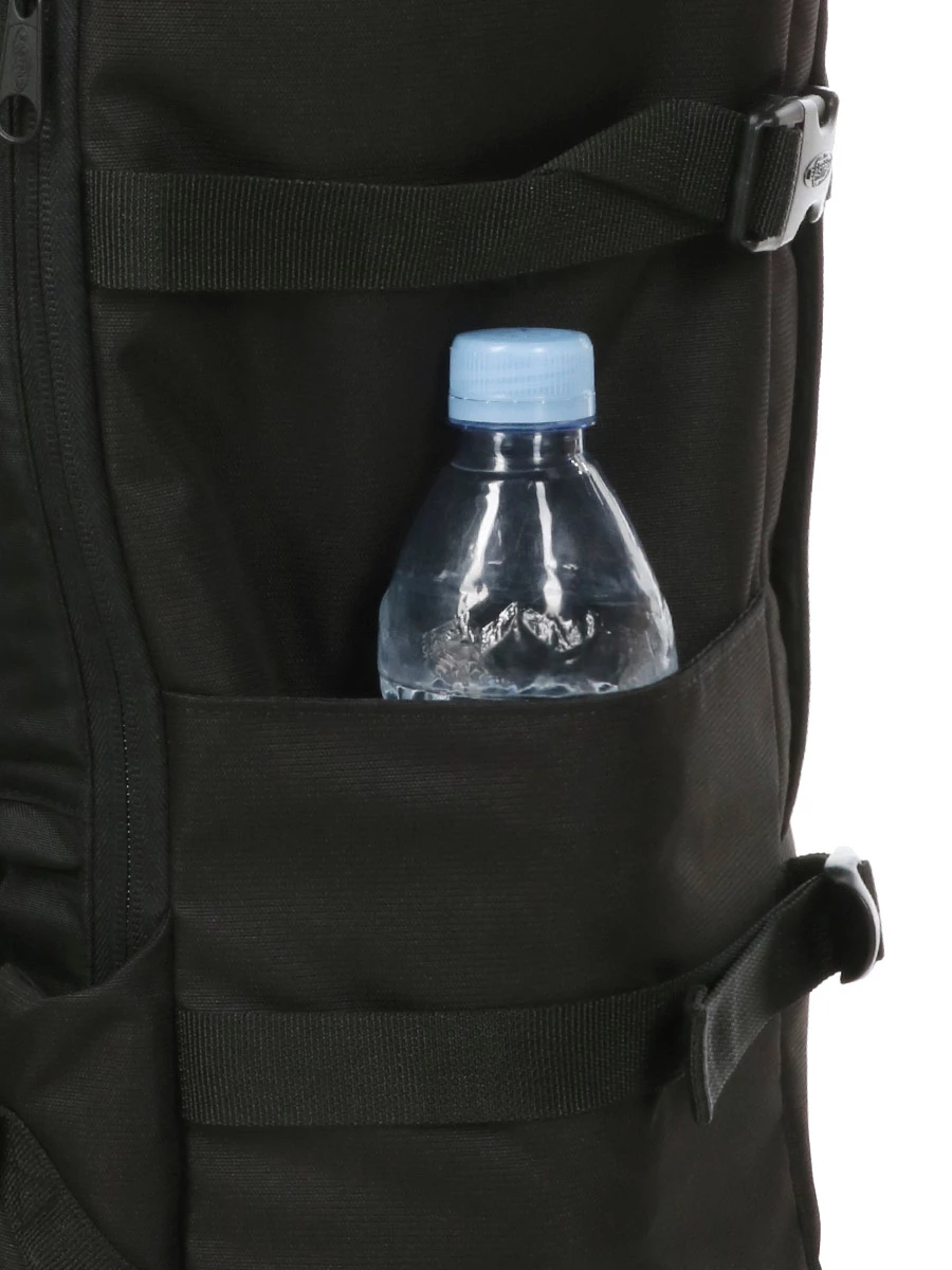 Le compartiment du sac Eastpak Adan Weekender est doté d’un double accès : une ouverture sur le haut du sac permet de saisir rapidement des objets qu’il contient tandis qu’une ouverture en U située à l’arrière permet un accès complet pour faciliter son remplissage. Son grand volume permet d’y loger toutes les affaires pour quelques jours : des vêtements de rechange, une trousse de toilette, quelques accessoires de sport ou de loisirs. Le compartiment comporte un porte-clefs et une poche plate zippée pour isoler les plus petits éléments. La paroi dorsale cache une poche matelassée et zippée pour un ordinateur jusqu’à 15 pouces. Sur la face avant du sac sont aménagées trois poche zippées de différentes tailles qui gardent faciles d’accès les titres de transport, le masque et le coussin de voyage, le livre du moment ou encore les lunettes de soleil. Les biens de valeur (portefeuille, bijoux) se placent à l’abri dans la poche secrète située à l’arrière du sac. Pratique, une poche à accès latéral est réservée aux chaussures, afin d’éviter qu’elles souillent le reste des affaires. Enfin, un porte-bouteille est aménagé sur le côté du sac.
