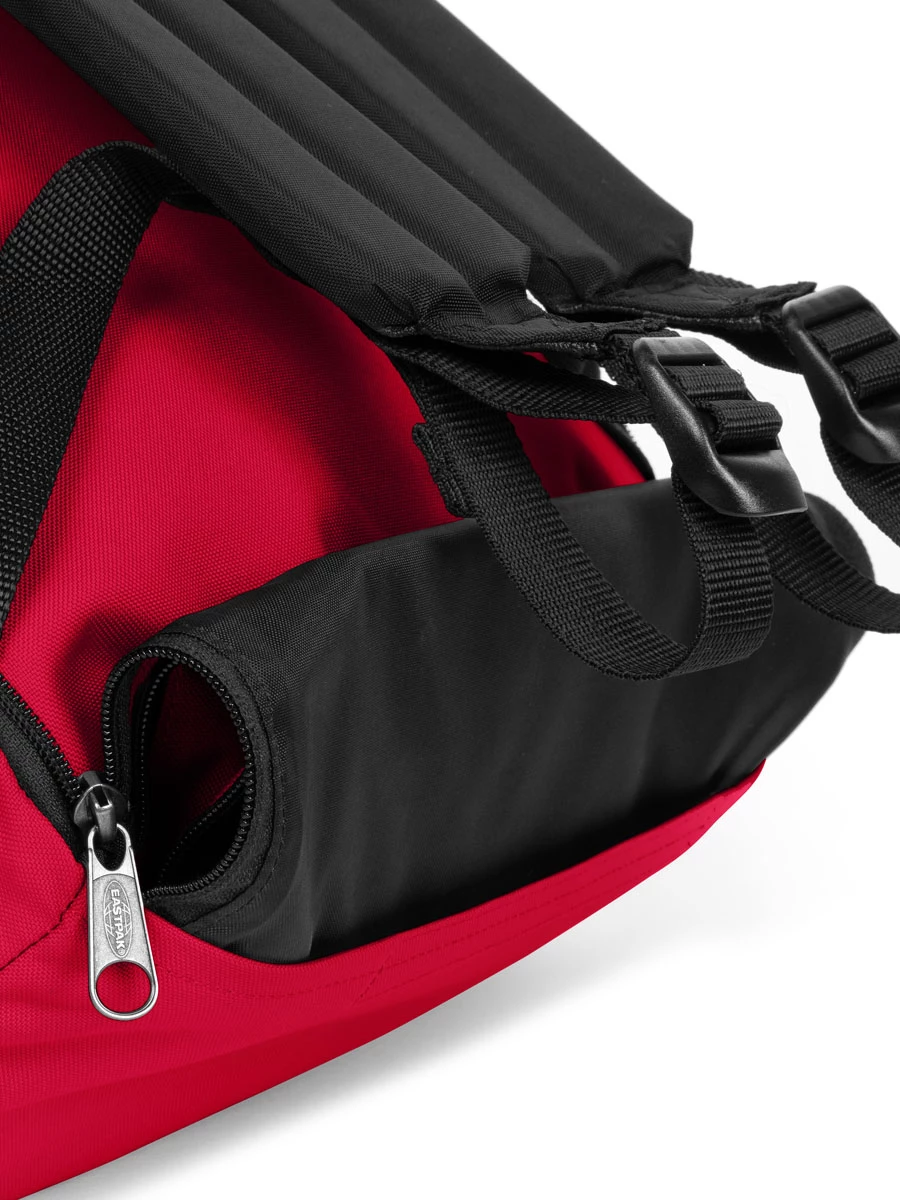 Côté rangement, le sac à dos Eastpak Padded Bike dispose d’un grand compartiment compatible avec le format A4. Il est ainsi facile d’y déposer des affaires de cours ou de travail. Un peu de linge et un nécessaire de toilette peuvent tout aussi aisément y être rangés pour être paré pour la séance de sport de fin de journée, notamment. A l’extérieur, une grande poche frontale zippée permet de laisser certains essentiels à portée de main. A l’arrière, son dossier est intégralement zippé pour laisser apparaître ses bretelles ou les ranger avec soin en fonction des besoins et des utilisations. Dessous, un emplacement permet de rabattre son panneau arrière pour un portage agréable dans le dos. Dans ce cas, il suffit de dézipper sons dossier et de le rouleauté pour le glisser dans cette petite poche intégrée à son fond.