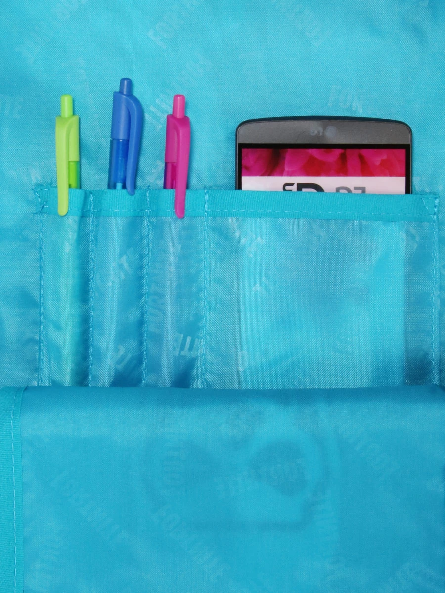 Le sac Fortnite Skull Trooper comporte deux compartiments fermés par des zips. Le premier est vaste et peut loger tous les grands manuels et classeurs nécessaires au bon déroulement de la journée. Il dispose d’une poche matelassée pour accueillir un ordinateur jusqu’à 15.6 pouces ou simplement maintenir des dossiers et documents bien à la verticale. Le second compartiment, plus petit, est parfait pour les cahier A4 ou la pochette de crayons de couleurs pour le cours de géographie. A l’intérieur, il possède trois passants pour stylo et une petite poche plate idéale pour la carte de bus pour un accès rapide. La poche frontale est grande et peut accueillir des livres au format poche et l’agenda par exemple.
