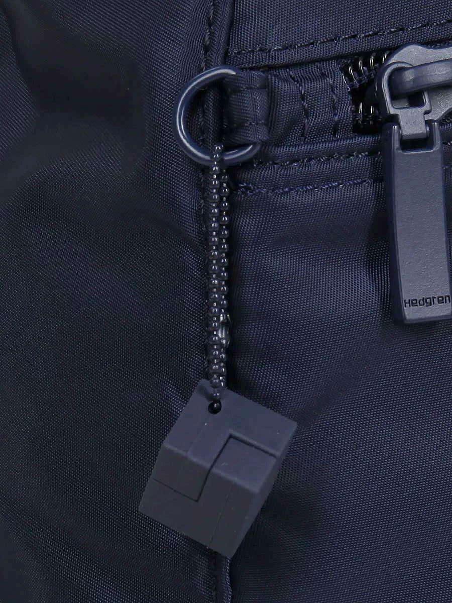 Ce mini sac Hedgren Inner City Vogue L possède un compartiment principal doublé muni d’une fermeture à glissière accessible uniquement au niveau du dos : cette particularité permet au contenu d’être protégé des mains baladeuses. A l’intérieur peut se ranger portefeuille, chargeur et roman par exemple. De plus, une poche matelassée peut accueillir un grand smartphone par exemple, et une poche zippée anti-RFID est l’endroit dédié pour les cartes bancaires et passeports biométriques. Cette dernière protège les données numériques des pirates informatiques. Sur le devant, une poche à zip peut contenir les indispensables du quotidien, comme un paquet de mouchoirs, quelques masques chirurgicaux ou des chewing-gums. Une place pour le téléphone portable est aussi disponible. Enfin, une petite breloque vient habiller le sac.