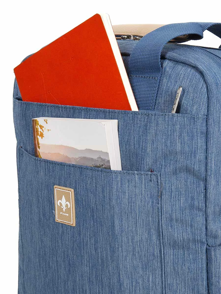 Le sac à dos Lys Urban possède un compartiment pour ordinateur jusqu’à 15.6 pouces. Le deuxième compartiment, en plus de pouvoir contenir des documents au format A4, comporte plusieurs poches. D’abord, une grande poche plate maintient les dossiers bien à la verticale pour garantir qu’ils ne se froissent pas. En face, trois petites poches sont parfaites pour les cartes. A l’extérieur, deux poches frontales viennent ajouter aux possibilités d’organisation. La première est zippée et contient un porte-clefs détachable pour en finir avec les frayeurs de fin de journée. Elle est profonde et peut également loger des carnets par exemple. La seconde poche frontale permet d’y glisser un livre pour un accès rapide par exemple. Une petite poche plate latérale permet de ranger des petits objets supplémentaires. A l’arrière, une poche fermée par un bouton pression peut garder le portefeuille et autres documents importants en sécurité.