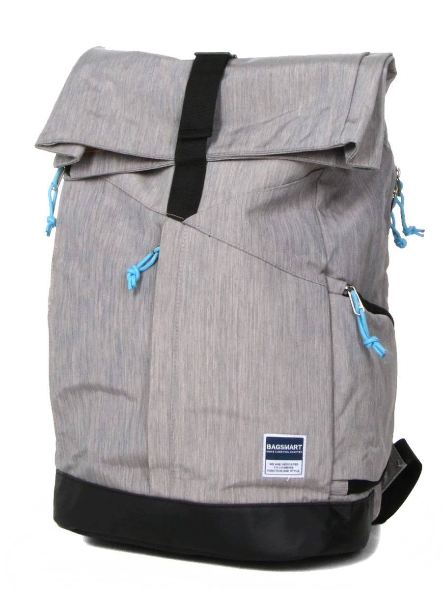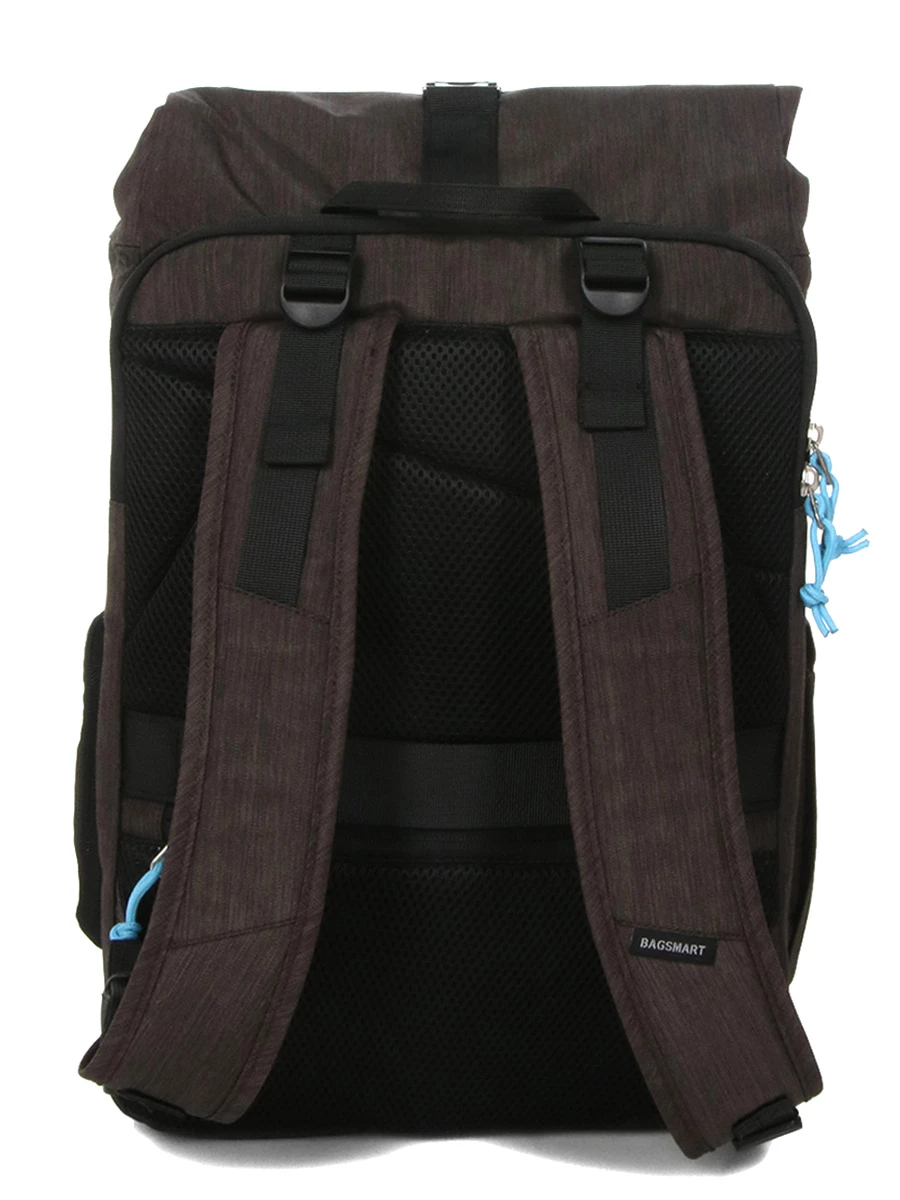 Pour des trajets placés sous le signe du confort, le sac à dos rolltop Bagsmart Commuter Loop dispose de bretelles moussées réglables à taille, d’un épais panneau arrière réalisé en mesh pour une bonne ventilation de l’ensemble du dos et de sangles de rappel de charge pour un bon équilibre du poids sur les épaules. Il peut également être fixé au trolley d’un bagage à roulettes à l’aide de son passant arrière. Sa petite poignée permet de le tenir à la main ou de le suspendre à une patère pour un rangement simple et rapide. Son fond moussé, sa doublure textile et ses fermetures à zip inversés forment un rempart efficace contre l’humidité.