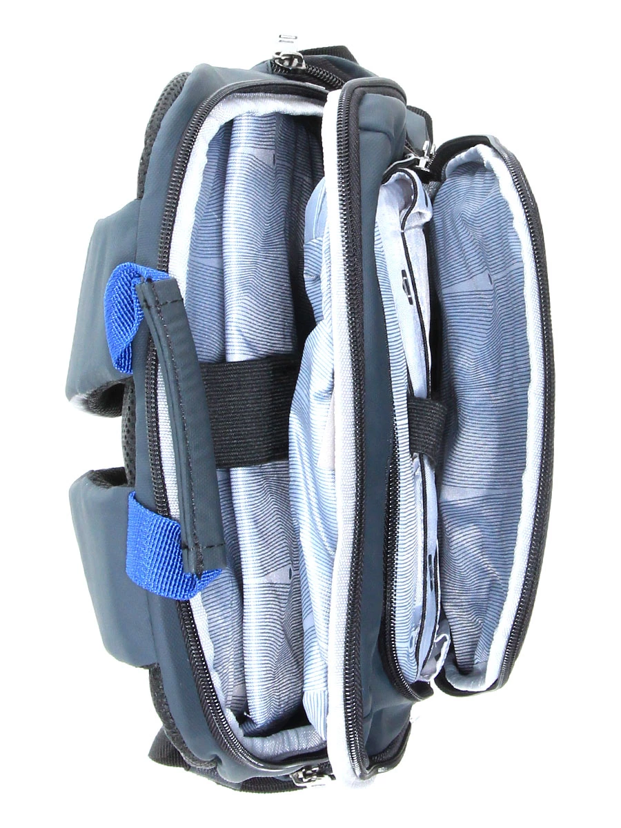 Le mini sac Delsey Parvis Plus Imperméable S dispose d’un compartiment équipée d’une poche rembourrée pour transporter en sécurité un ordinateur jusqu’à 13.3 pouces. Son passant connecté permet de relier l’intérieur du compartiment vers sa poche côté pour simplifier le rechargement du téléphone, pour faire passer un câble d’écouteur, etc. Sa poche frontale renferme différentes options de rangement adaptées pour une tablette, des cartes de visite, des stylos, des petites fournitures… Ses 2 poches côtés peuvent faire office de poches porte bouteille en les laissant ouvertes. Une dernière petite poche zippée située sur le haut du sac vient compléter le tout.