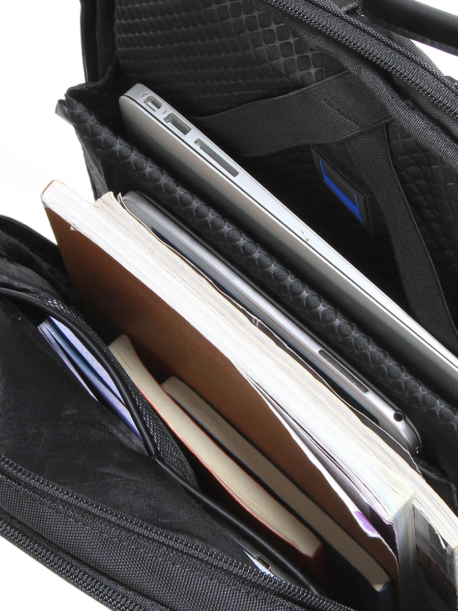 Le sac business Snowball Business II dispose d’un compartiment adapté aussi bien pour les documents de travail, les mémos, les feuilles volantes et les revues techniques qu’au transport d’une tablette et d’un ordinateur 15.6 pouces – à glisser dans des poches renforcées spécifiques. A l’avant, 3 poches zippées – dont l’une équipée de différentes poches pour accessoires – permettent de sérier efficacement effets personnels et fournitures de bureau.