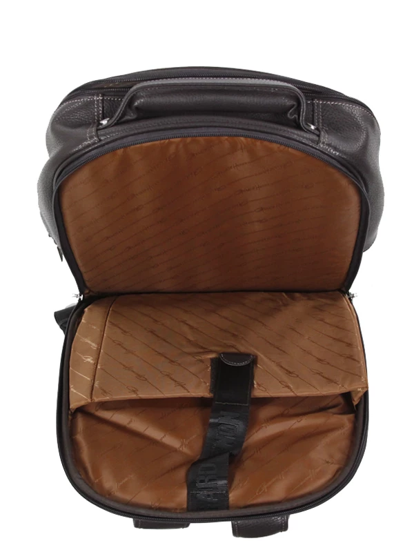 Ce sac à dos en cuir Gérard Hénon Golf est idéal pour ranger toutes ses affaires et accessoires de travail. Il dispose de deux compartiments entièrement doublés et très spacieux. L’espace de rangement inférieur est équipé d’une poche matelassée pour accueillir en toute sécurité un ordinateur portable 15.6 pouces alors que le compartiment supérieur offre un fond rigide, une grande poche zippée ainsi qu’une poche plate pour organiser ses dossiers et documents professionnels de format A4.