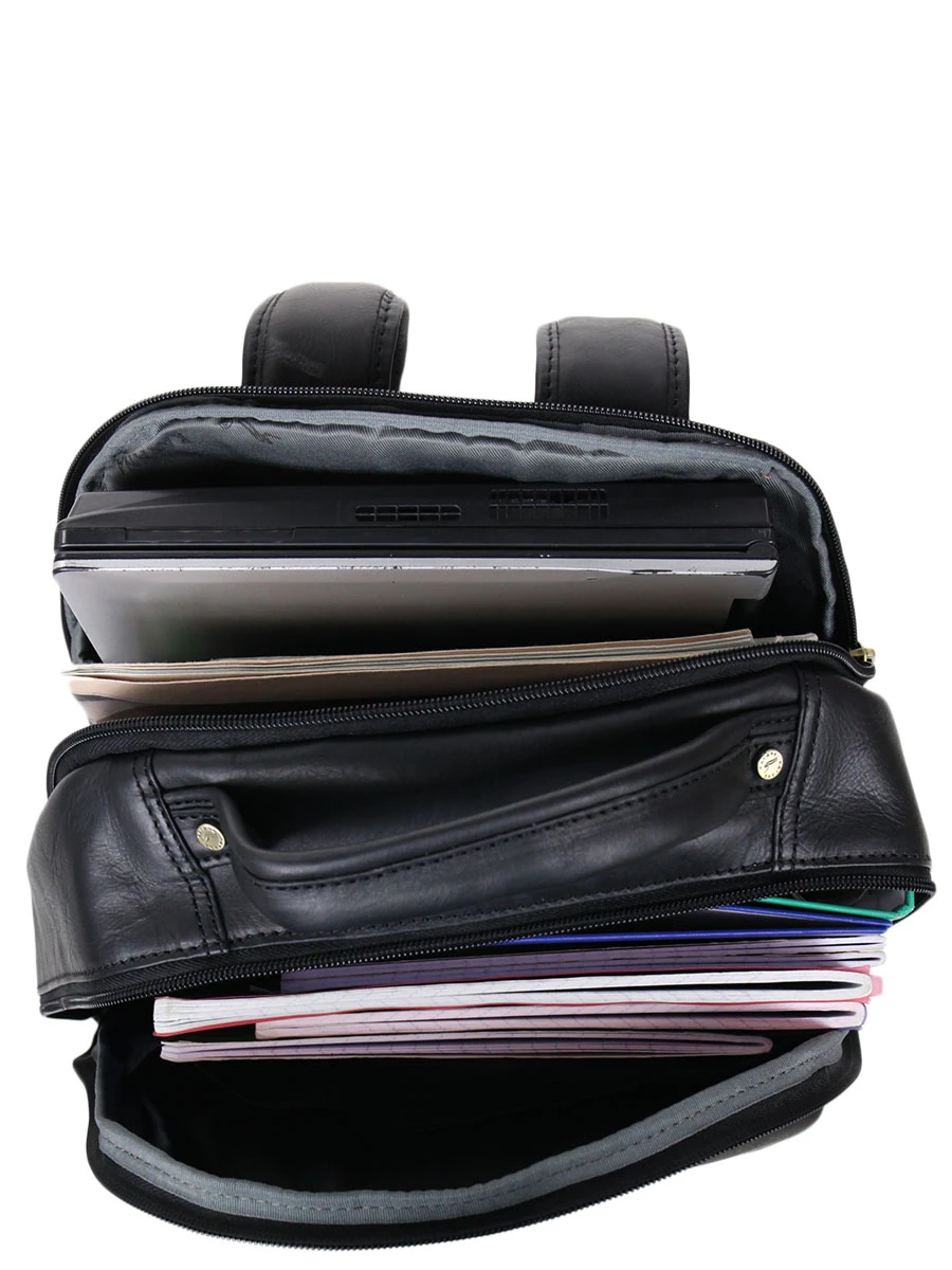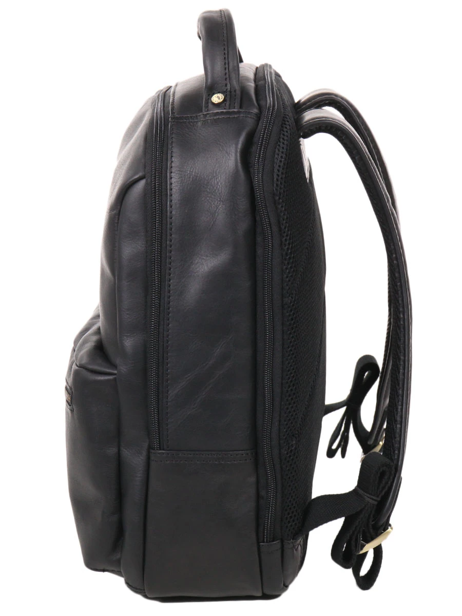 Au dos, on trouve un panneau de renfort en mesh pour un parfait soutien lombaire. Ce sac est aussi équipé de sangles d’épaules ergonomiques et ajustables, d’une poignée de transport supérieure en cuir et de rivets de protection.