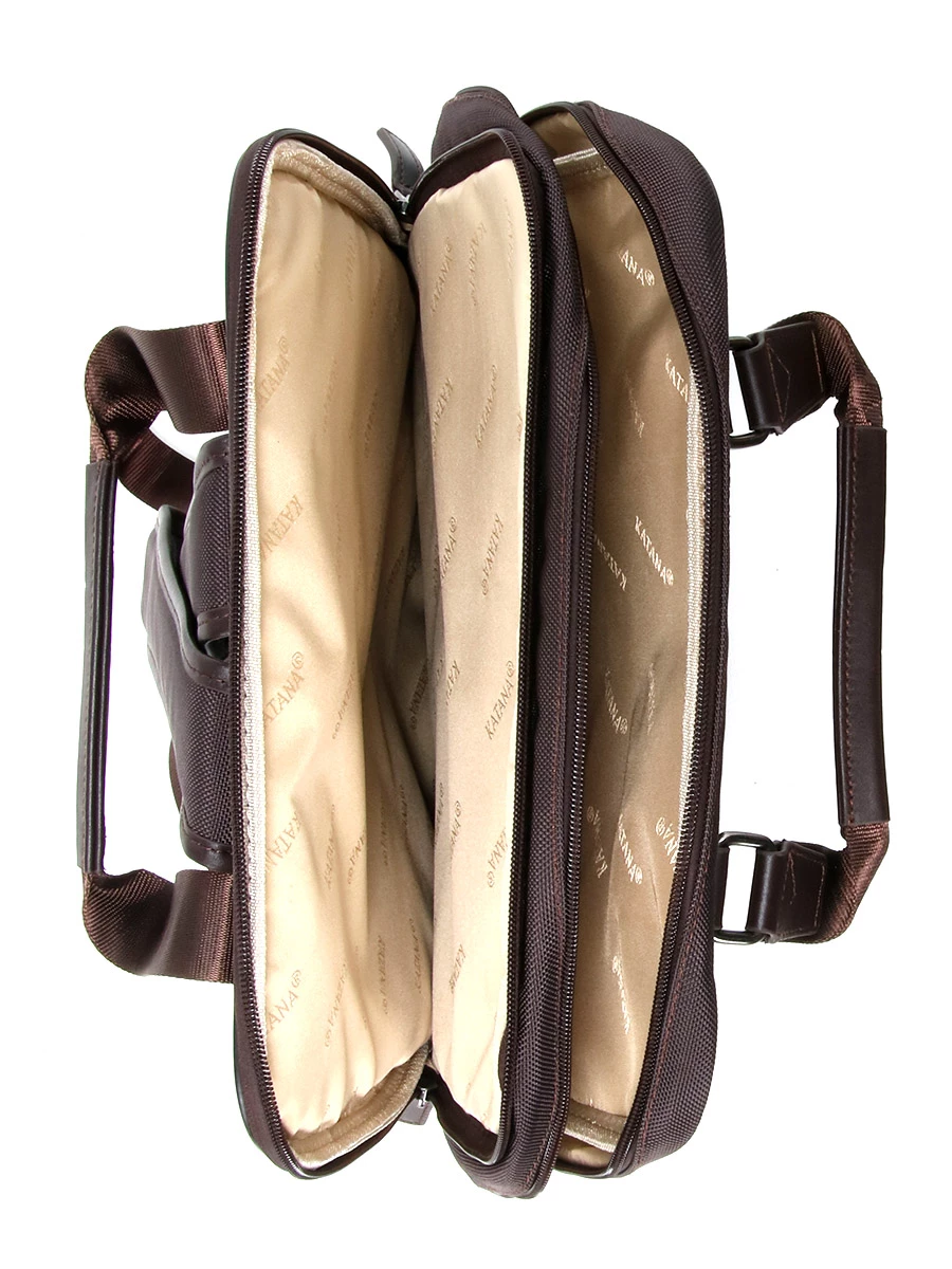 Le sac business Katana Urban Chic est doté de 2 grands compartiments doublés. Le premier permet d’accueillir un ordinateur 14 pouces avec aisance. Il est rembourré et assure à son usager une sécurité contre les chocs. Le second est notamment utile au rangement des téléphones (2 poches disponibles), des stylos dans des emplacements spécifiques, de quelques effets personnels dans une poche zippée et de quelques feuilles volantes si besoin. Les poches extérieures zippées peuvent être utilisées pour les affaires personnelles comme les pièces d’identité, paire d’écouteurs sans fil, petite bouteille d’eau et encas.
