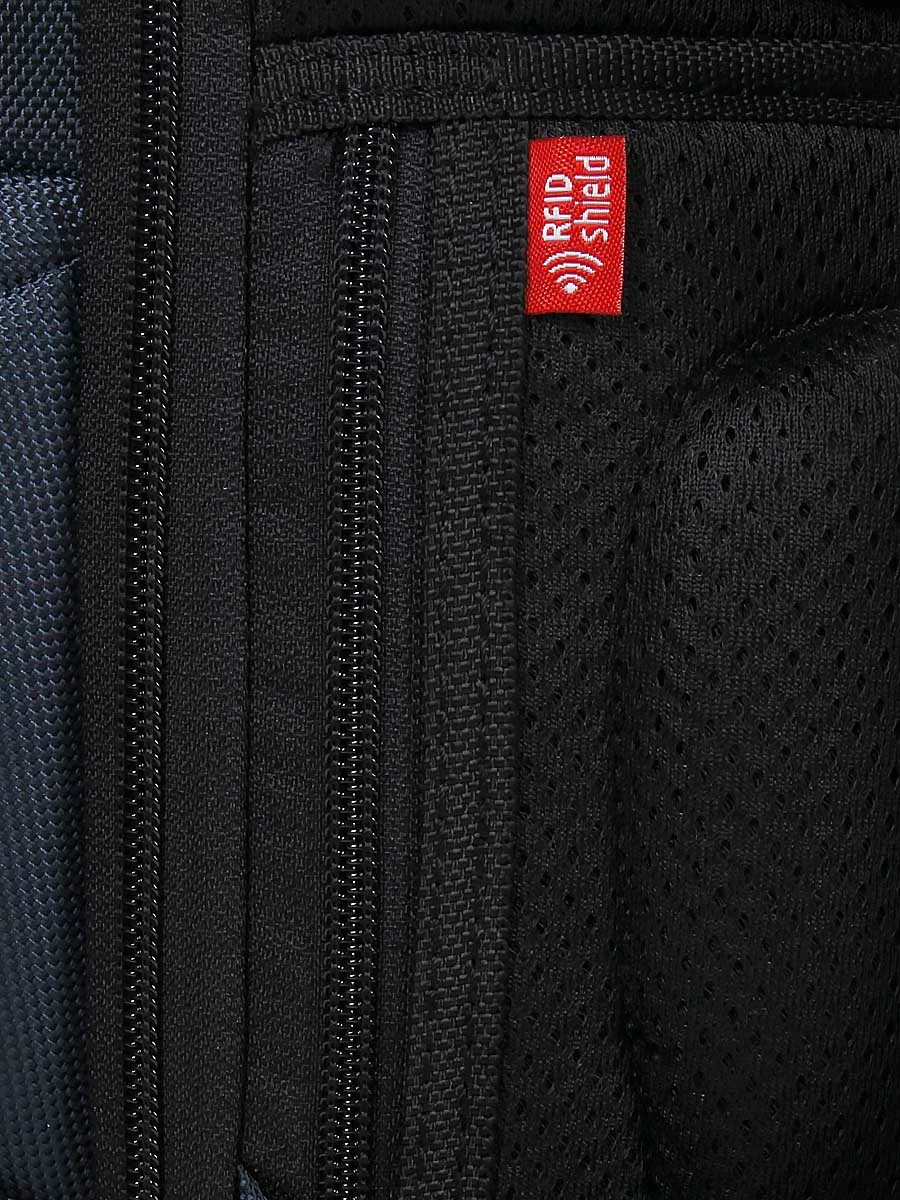A l’extérieur, ses 2 poches frontales permettent de trier efficacement, dans des emplacements dédiés, les effets personnels et divers indispensables de la journée de travail (stylos, cartes de visite, trousseau de clés…). Sa petite poche haute à zip possède une doublure polaire anti-rayure ce qui la rend idéale pour une paire de lunettes. Ses poches latérales zippées (dont l’une avec doublure étanche) permettent de ranger à part une gourde, un parapluie… A l’arrière, une discrète petite poche zippée disposant de la technologie anti-RFID permet de garder à l’abri la carte bancaire, etc. Pratique, de nombreux passants multimédia sont placés à l’intérieur de ses poches et de ses compartiments pour permettre une recharge rapide du téléphone ou le passage d’une paire d’écouteurs, par exemple.