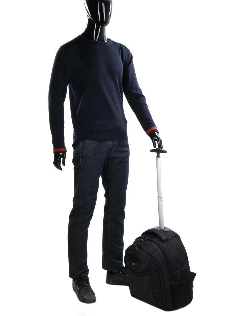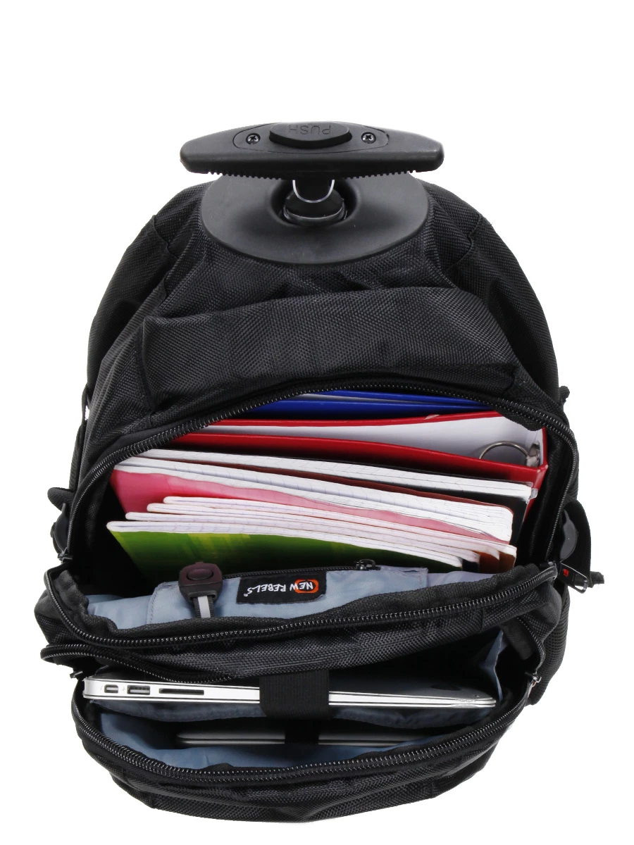 Côté extérieur, ce sac ordinateur New Rebels Cross est tout aussi fonctionnel. En effet, il est équipé d’une poche arrière zippée, utile pour y placer les bretelles escamotables ou des affaires à la dernière minute. On trouve aussi une poche frontale et 2 poches latérales en filet pour les effets personnels, la bouteille d’eau, un parapluie… Afin de transporter les affaires confortablement, en plus de ses 2 roues, ce sac est doté de sangles d’épaules matelassées, d’un dos rembourré mais aussi d’une poignée supérieure renforcée.