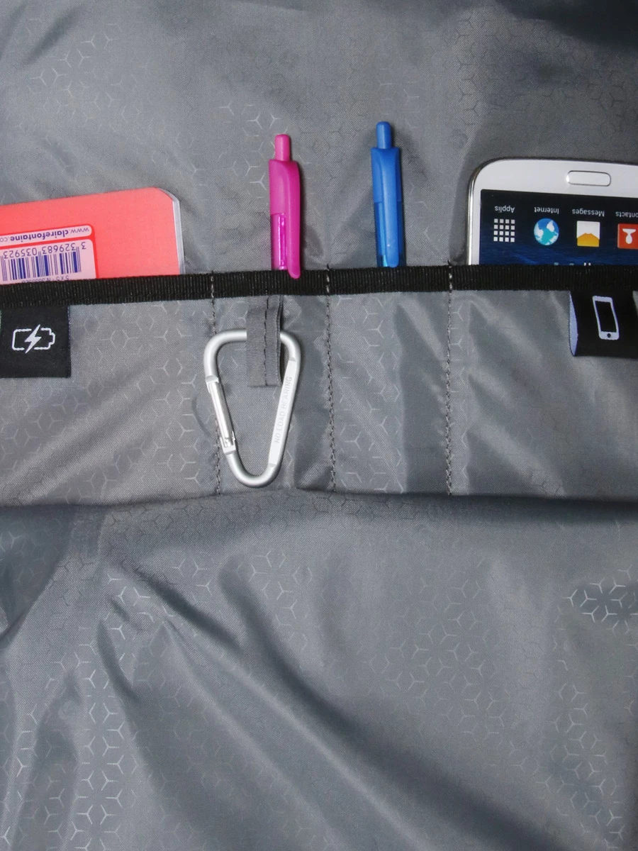 Le compartiment multimédia du sac Samsonite Roader L peut accueillir un ordinateur jusqu’à 17.3 pouces. Il est en outre doté d’une poche matelassée pour tablette. Le compartiment principal est vaste et peut accueillir une multitude de dossiers au format A4, notamment. Une grande poche plate permet en outre de maintenir des documents à la verticale. Le troisième compartiment est parfait pour les accessoires. Il dispose d’un mousqueton pour accrocher les clefs, de deux passants pour stylo et de deux poches plates pensées pour la batterie nomade (non fournie) et le téléphone portable avec sa coque. Un quatrième compartiment se révèle à l’ouverture du soufflet : il est dédié au linge. Son ouverture est très ample à la manière d’une valise. Les tenues de rechange pour deux jours restent en place grâce au plateau zippé en mesh.