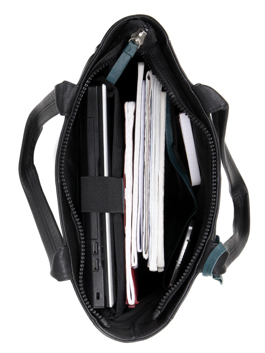 Le sac shopper Burkely Bold Bobby dispose d’un compartiment doublé pouvant accueillir des documents A4, des mémos et une revue technique, par exemple. Sa grande poche matelassée amovible permet d’emporter bien à l’abri des chocs un ordinateur jusqu’à 14 pouces. Pour retrouver en un tour de main les cordons d’alimentation et petites fournitures en tout genre, il suffit de les glisser dans sa poche zippée ou sa poche ouverte. Pour le téléphone, une poche spécifique est également présente. A l’avant et à l’arrière, 2 autres poches zippées permettent de garder à portée de main un trousseau de clés, un badge d’accréditation, un pass pour les transports…