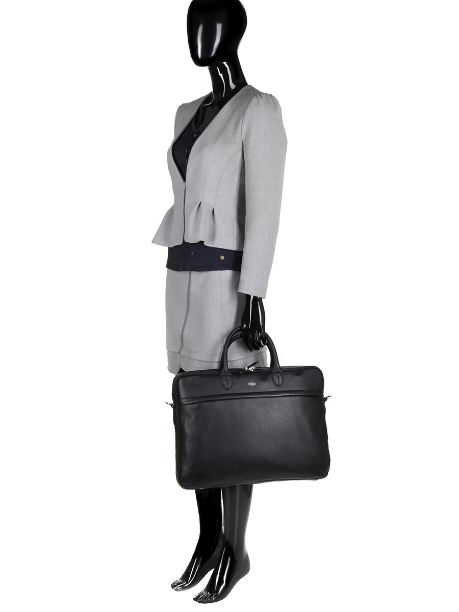 Le compartiment avant de la sacoche business Jump Uppsala Cuir renferme différentes poches ouvertes permettant de sérier efficacement des fournitures de bureau. Une attache mousqueton permet fixer un trousseau de clés pour le retrouver rapidement et ainsi éviter de l’égarer au fond du sac. Le compartiment arrière renferme quant à lui une grande poche matelassée convenant au transport d’un ordinateur jusqu’à 17 pouces. Sa poche zippée permet de sérier à part les cordons d’alimentation. Documents A4, revues techniques et feuilles volantes peuvent également être déposés à l’intérieur de ce compartiment. Pour garder certains effets personnels à portée de main, il suffit d’opter pour sa grande poche frontale ou sa poche arrière.