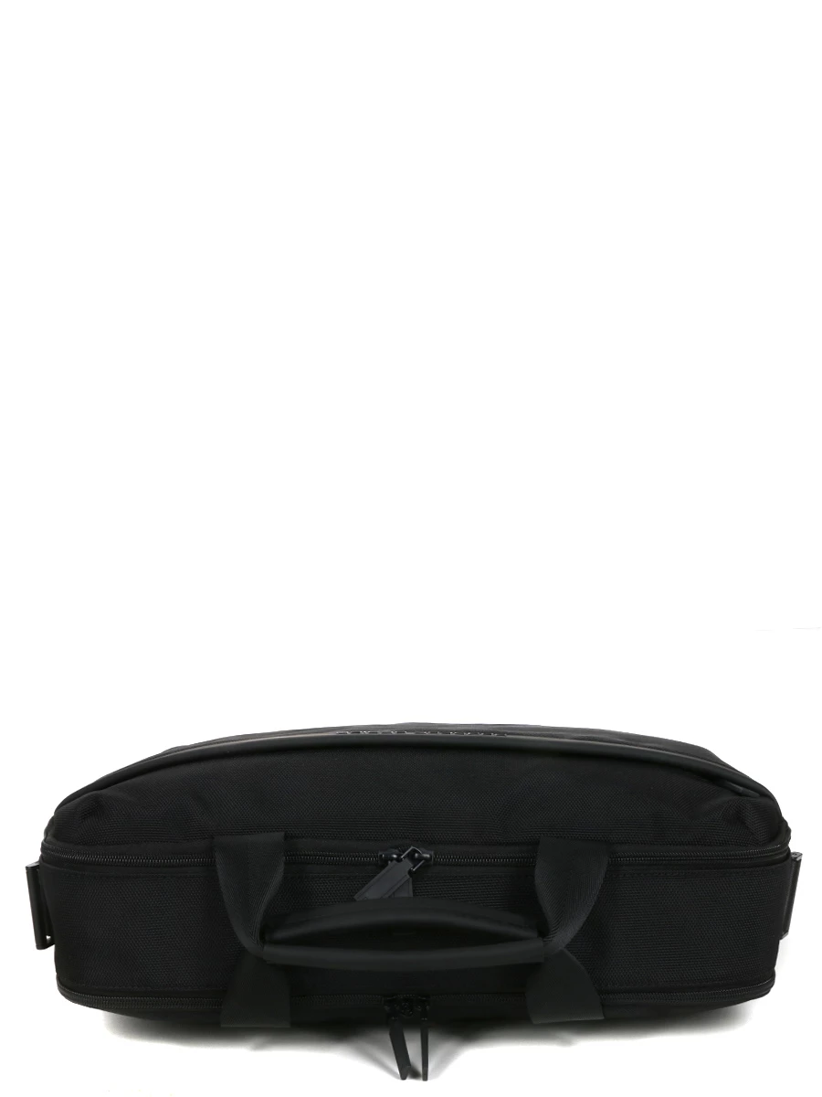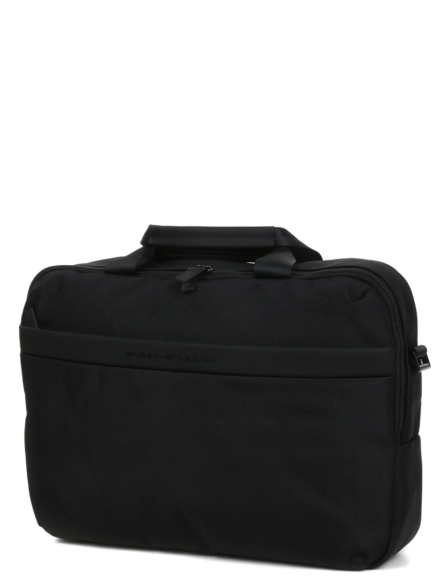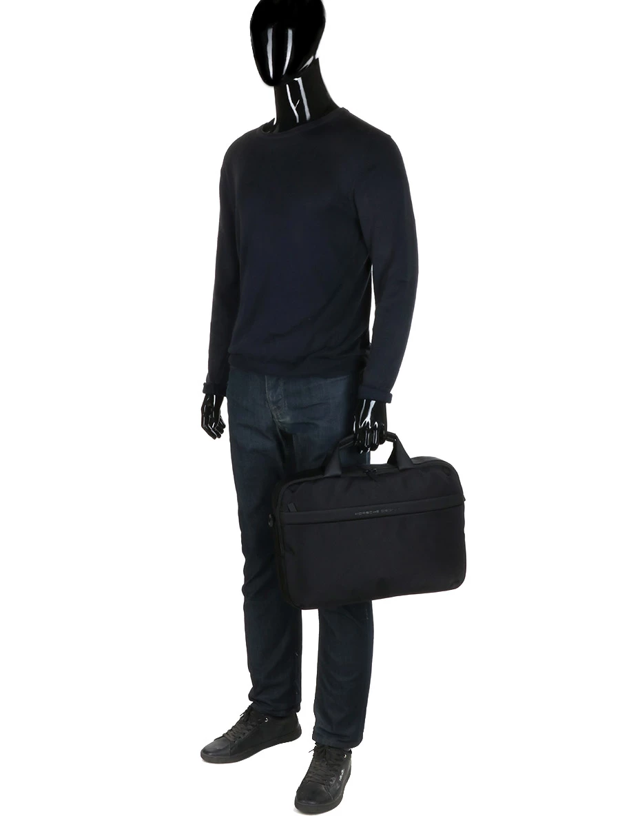 La sacoche business Porsche Design Voyager dispose d’un compartiment avant pouvant être dédié au transport de mémos, pochettes, documents techniques et autres support de réunions. Là, 4 poches ouvertes et une grande poche zippée permettent de sérier les fournitures de bureau, des petits calepins et divers accessoires multimédia. Le trousseau de clés peut être accroché à son attache porte clés pour ne pas risquer de tomber au fond du compartiment. Son compartiment arrière renferme quant à lui une poche matelassée adaptée pour emporter à l’abri des chocs un ordinateur jusqu’à 15.5 pouces. Les oublis et ajouts de dernière minute peuvent être glissés dans sa poche frontale spacieuse.