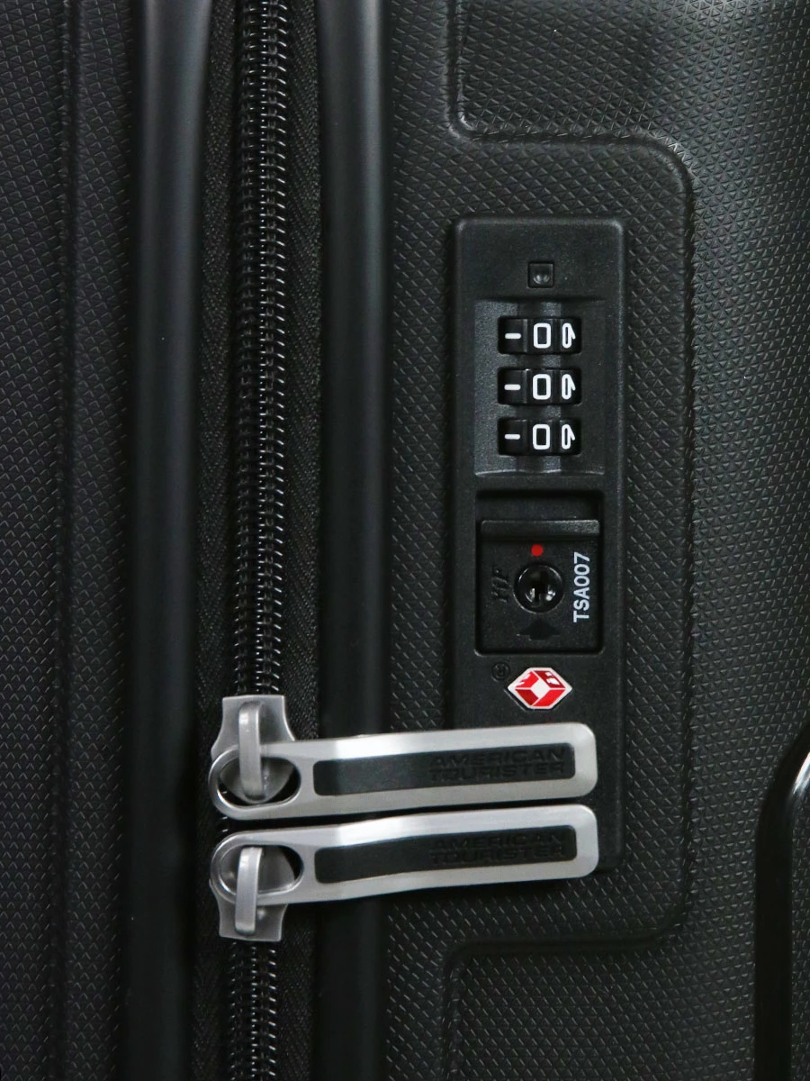 Cette valise cabine American Tourister Sunside ne pèse que 2.5 kg et peut contenir jusqu’à 35 L : un volume maximisé grâce à sa forme carré. Côté transport, ce bagage est ergonomique grâce à son trolley ajustable double tube, monté sur 4 doubles roues multidirectionnelles, assurant une parfaite maniabilité. Elle est également équipée d’une poignée de portage supérieure, si vient le besoin de la déplacer à la main, et se ferme à l’aide d’une glissière de qualité, sécurisée par une serrure à code TSA intégrée (pour des voyages sereins vers les USA).