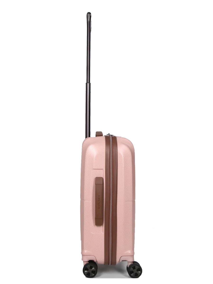 La valise Delsey St Tropez Slim glisse avec fluidité sur ses 4 roues doubles multidirectionnelles. Pour la diriger, il suffit d’empoigner son trolley à double canne à position ajustable. Pour la soulever aisément et la déposer sur un rack à bagages, elle est dotée de 3 poignées de portage – 2 souples sur le dessus et le côté et une rigide sur le dessous. Sa serrure TSA à code ergonomique et sa fermeture à Zip Securitech 2 permettent de partir l’esprit léger, y compris s’il est nécessaire de franchir les douances états-uniennes.