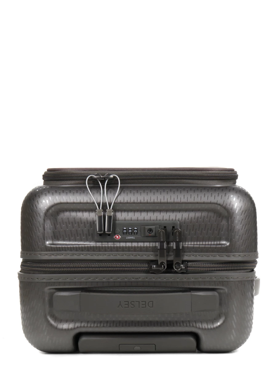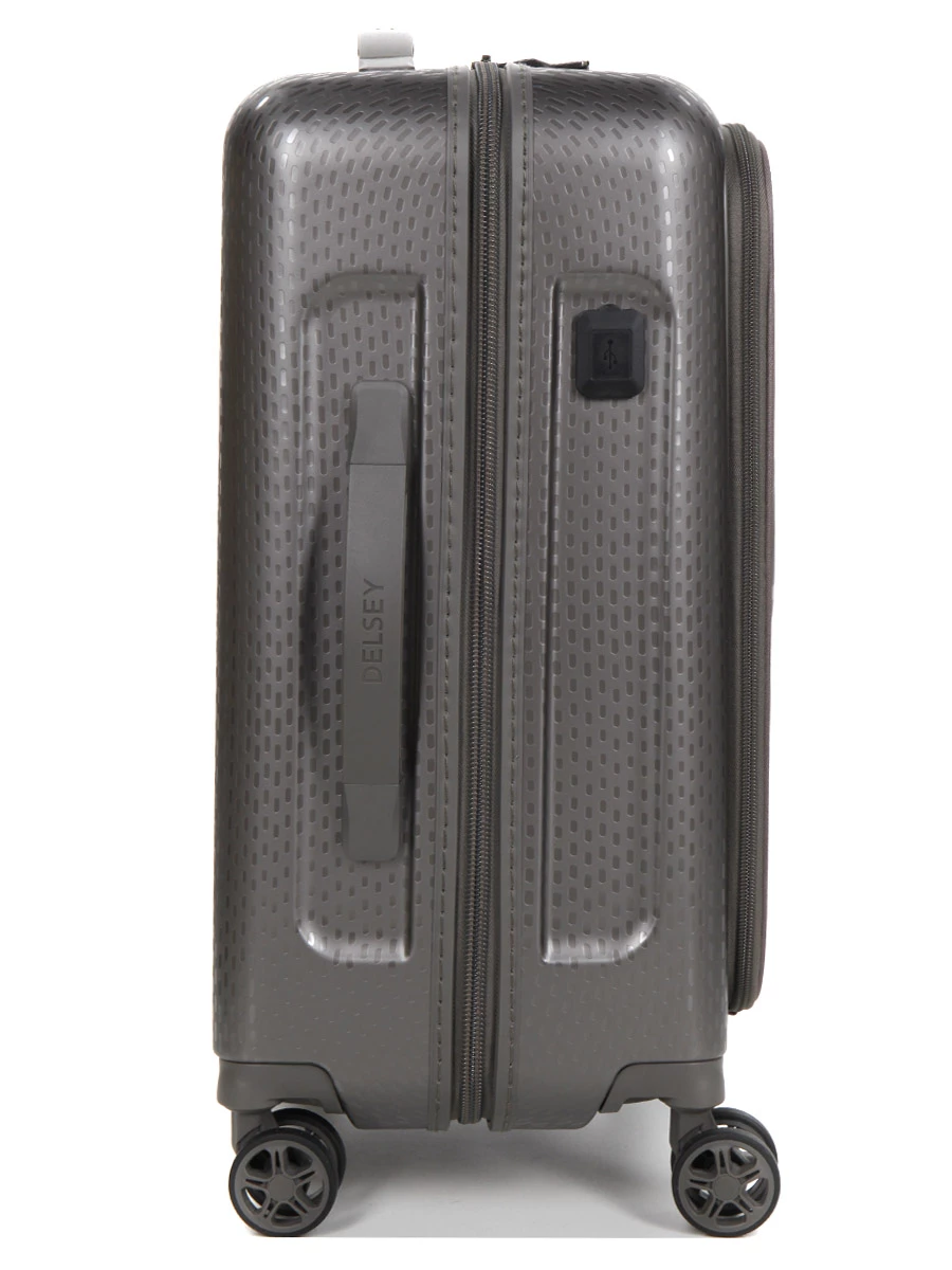 La valise Delsey Turenne 55 cm – Poche Frontale est parfaite pour les nomades connectés et les actifs en voyage d’affaires. Dotée d’un compartiment multimédias, d’un port USB et d’un micro-USB, elle permet d’emporter les compagnons numériques en toute sécurité. En effet, elle dispose d’un système de double zip Securitech couplé à une serrure TSA à code scellant tous les compartiments. Elle est conçue en polycarbonate et garantie pendant dix ans en gage de son excellente facture. Idéale pour quelques jours, elle est compatible aux normes cabine Air France et EasyJet notamment.