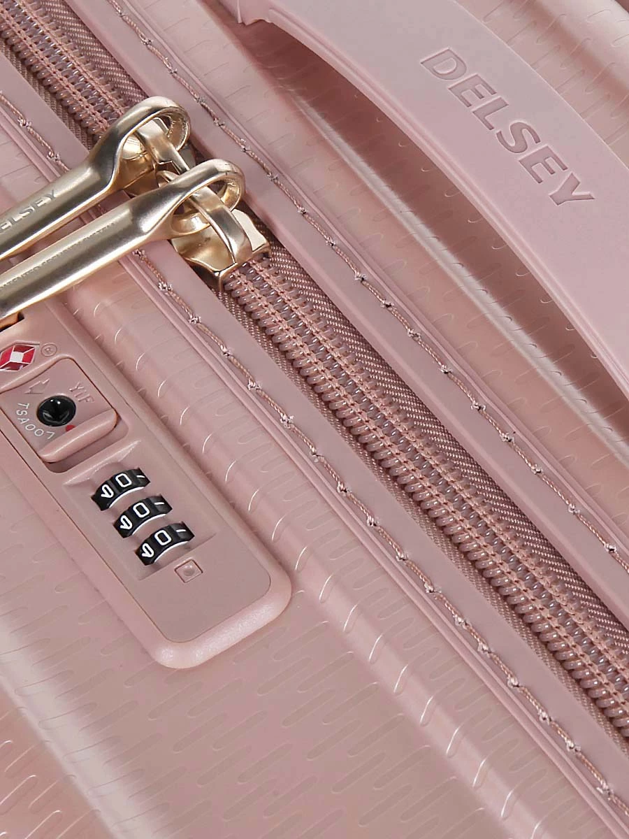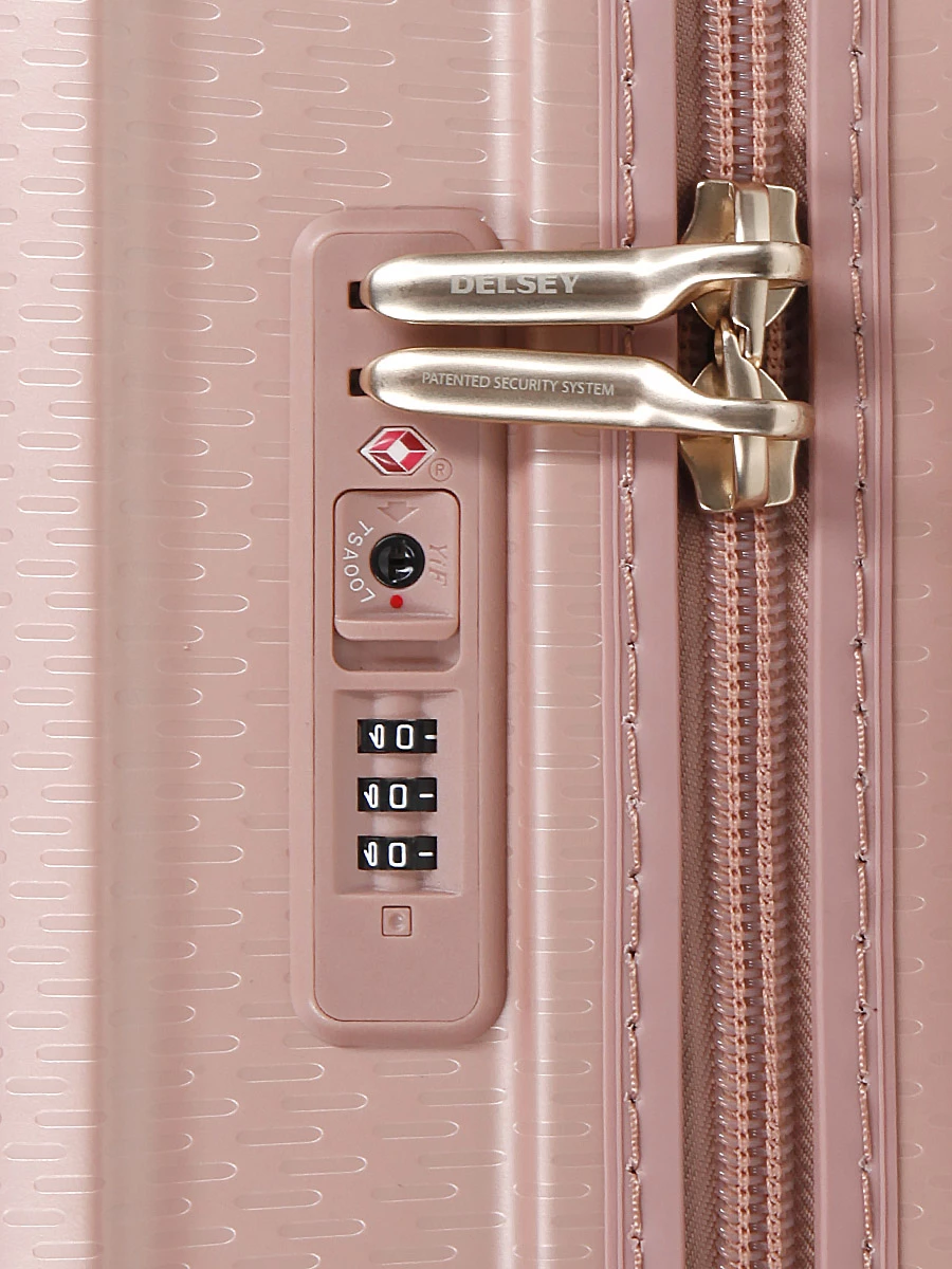 Cette moyenne valise Delsey Turenne possède un système de fermeture nouvelle génération : le zip Securi Tech. Celui-ci est extrêmement résistant. Elle peut se verrouiller à l’aide d’une serrure à code TSA intégrée, à laquelle on peut facilement accéder. On trouve aussi sur cette valise, un porte-adresse encastré au dos et un code unique d’identification, très utile en cas de perte et de vol.
