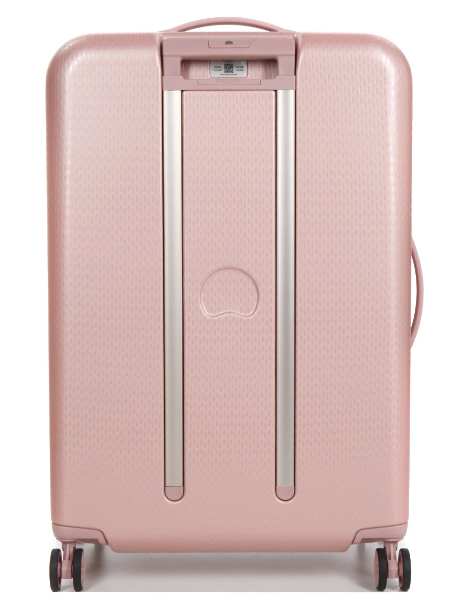 La valise Delsey Turenne est équipée de 4 doubles roulettes multidirectionnelles, afin d’assurer un roulage fluide à 360° et une stabilité optimum à la verticale. Elle se compose aussi d’une poignée de traction ajustable et de 2 poignées de portage flexibles et confortables (supérieure et latérale).