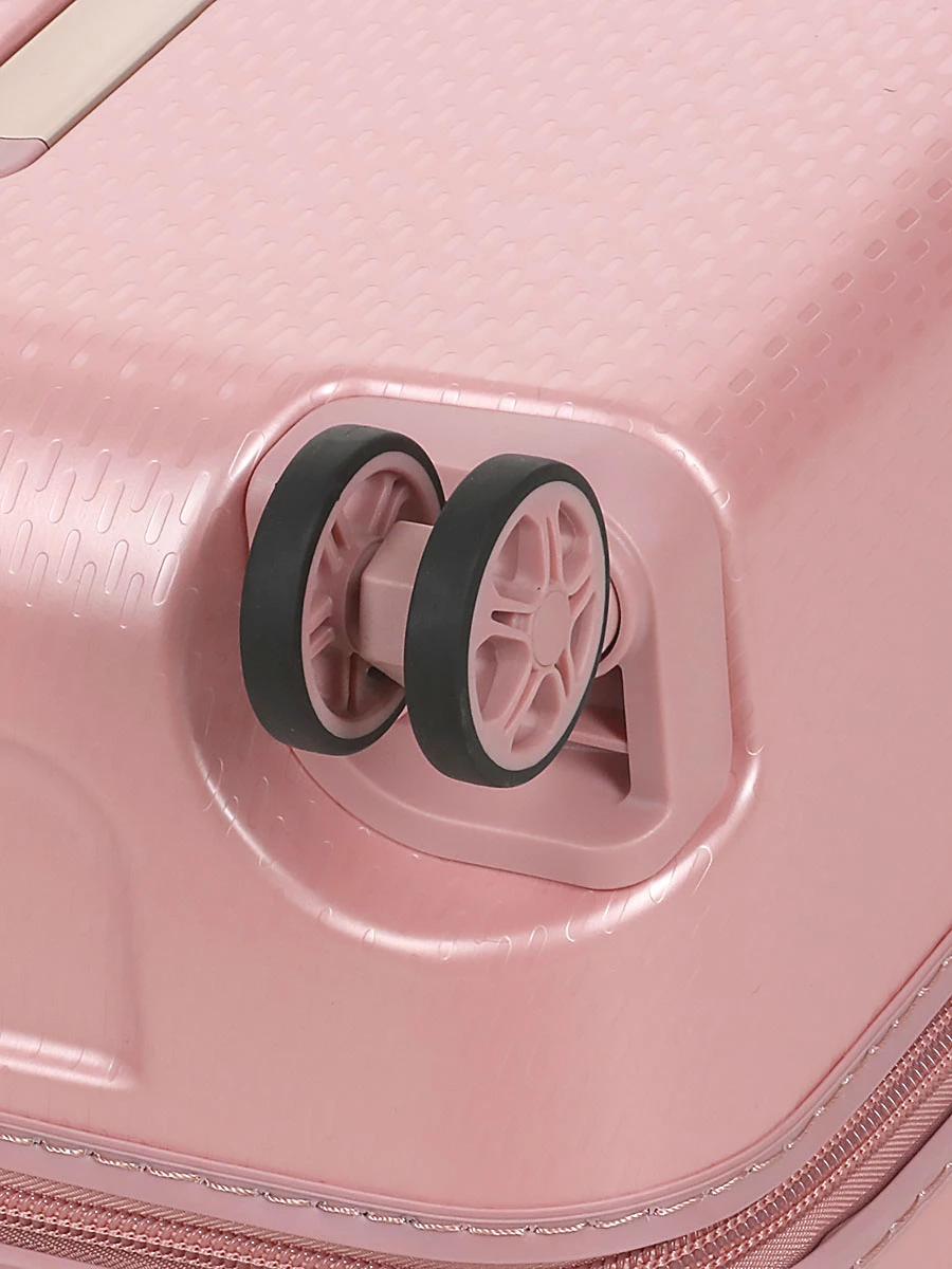 La valise Delsey Turenne est équipée d’une poignée de traction ajustable, à 2 barres, ainsi que de 4 doubles roues rotatives à 360° pour un confort extrême de roulage et une parfaite stabilité. Elle peut aussi s’attraper à la main par sa poignée haute flexible ou par celle latérale. En cas de vol ou de perte, son propriétaire n’aura rien à craindre puisqu’elle est munie d’un code unique d’identification et d’un porte étiquette intégré.